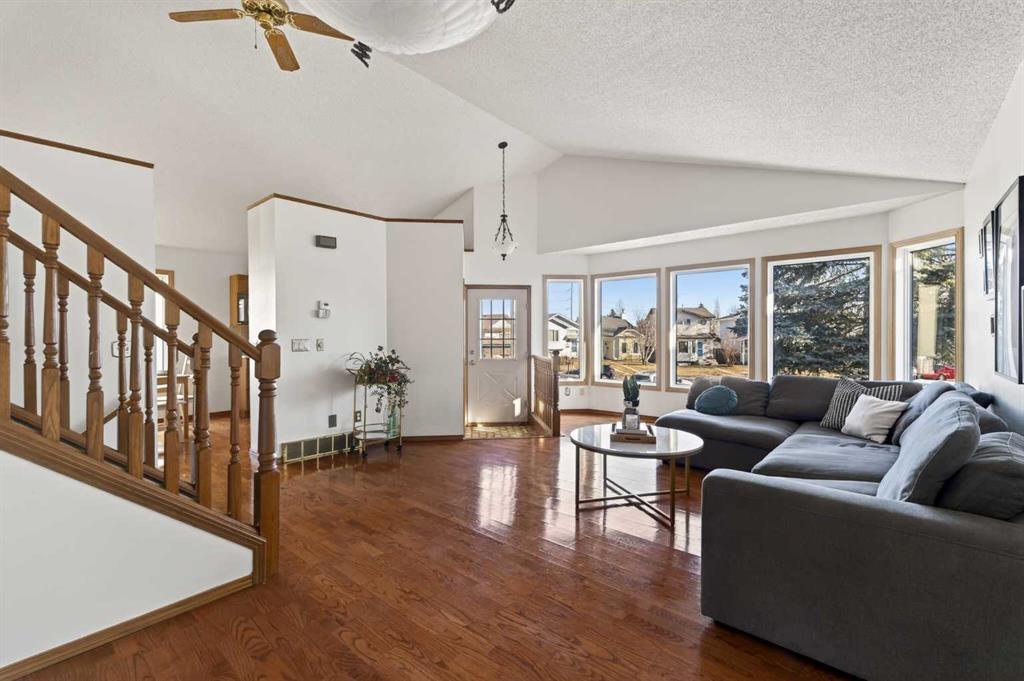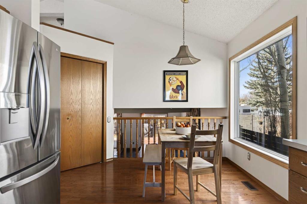 OPEN HOUSE SATURDAY & SUNDAY MARCH 7-8 FROM 2:00-4:00 PM. Welcome to 51 Riverbirch Place SE! This exceptionally cared-for 4-level split offers over 2,300 sq ft of thoughtfully designed living space and is perfectly positioned at the end of a quiet cul-de-sac on an oversized 5,102 sq ft west-backing pie lot. Recently repainted throughout and meticulously maintained, this move-in-ready home combines space, comfort, and an unbeatable location. From the moment you walk in, you’ll notice how spacious the home feels. Hardwood floors and vaulted ceilings create a bright, open atmosphere that flows from the front living room into the kitchen, which features updated stainless steel appliances, plenty of cabinet space, and a sunny breakfast nook. Adjacent to the living room, a formal dining area provides the ideal setting for hosting large family gatherings and holiday dinners. The upper level features three generously sized bedrooms, all finished with durable vinyl plank flooring. The 5-piece main bath offers dual sinks, a large soaker tub, a separate shower, and convenient cheater access to the primary bedroom. Just a few steps down, the bright lower-level family room is filled with natural light from expansive west-facing windows and offers direct access to the large back deck through patio doors — seamlessly blending indoor and outdoor living. Finished with vinyl plank flooring and centred around a cozy wood-burning fireplace, this space is perfect for relaxing at the end of the day. This level also includes a fourth bedroom and an additional 4-piece bathroom, making it ideal for guests, teens, or extended family. With four bedrooms above grade, this home offers flexibility for growing families. The fully finished basement provides even more functional space and can easily serve as a games room, children’s play area, home gym, or private office. This split-level also comes with a large crawl space that provides extra storage for seasonal items. Step outside to the private, tree-lined west-facing backyard and enjoy summer evenings in the sun. The oversized pie lot offers exceptional outdoor space, complemented by a large deck for entertaining and a garden shed for additional storage. A double parking pad provides convenient off-street parking. Comfort and peace of mind continue with central A/C to keep you cool during hot summer days, a new roof installed in 2024, a new fence, and fresh interior paint throughout. Located close to transit, schools, parks, and the Bow River pathway system, this home is just a short walk to restaurants, shops, and groceries at Riverbend Centre. With quick access to Glenmore Trail and Deerfoot Trail, commuting throughout the city is effortless. Book your showing today to see this beautifully maintained family home on a premium lot in a quiet, established community!