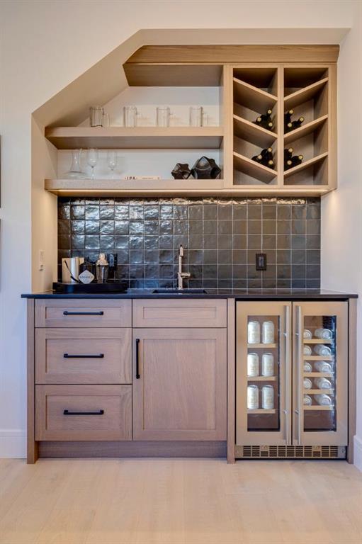 Discover exceptional living in the heart of Calgary’s Inner City with this exquisitely crafted show home in the vibrant and highly sought-after community of Currie. Meticulously built and designed to impress, this true bungalow villa is a statement in refined elegance, boasting premium upgrades, custom millwork, and a layout that seamlessly blends timeless sophistication with everyday functionality. From the moment you step into the spacious foyer, you're welcomed by soaring ceilings and engineered white oak herringbone hardwood flooring, setting the tone for the superior level of finish throughout. A private front den with views of the charming front porch serves as the perfect home office or library, offering separation from the main living space. The heart of the home is an expansive open concept living area that pairs a classic design aesthetic with modern luxuries. The formal dining area is ideal for entertaining, while the masterfully curated kitchen is the "chef's kiss" featuring custom cabinetry, quartz countertops, and an elite panelled Sub-Zero refrigerator, Wolf appliance package, including a 6-burner gas range with griddle, built-in wall oven and microwave, and Asko dishwasher. An oversized island invites gatherings, and the adjacent open pantry keeps essentials close at hand yet neatly tucked away. The living room is adorned in natural light and anchored by a striking matte black feature fireplace wall, creating a dramatic focal point. Large sliding glass doors extend the living area outdoors to a pergola covered deck, offering a seamless indoor/outdoor lifestyle experience. Retreat to the luxurious primary suite with vaulted ceilings, expansive window, and a custom designed dressing room leading to a lavish 6pc ensuite. Indulge in the deep soaker tub, his/her sinks, and a show stopping walk-in shower with dual rainfall heads and a built-in bench, all appointed with exquisite tile and designer fixtures. Thoughtfully designed for convenience, the main floor also features a spacious laundry/mudroom with access to the heated double garage with aggregate flooring. Downstairs, you’ll find in-floor boiler heating, high ceilings, and an entertainer’s dream layout. A generous games room with a full wet bar flows into a cozy media room, perfect for movie nights or game days. Two large bedrooms, one with its own ensuite, are separated by a dedicated home gym space and guest bathroom. Homeowners will love the large pergola deck that steps down to their own backyard where gardening enthusiasts can create an outdoor colourful oasis or a relaxation retreat. Located in Currie, a master-planned community rich in history and brimming with modern lifestyle amenities, from scenic parks and pathways to dog parks, cafés, restaurants, and top- tier schools. Just minutes from Marda Loop and downtown Calgary. Personalize your dream villa today by meeting with our design experts and customizing the finishing touches to match your unique style and vision