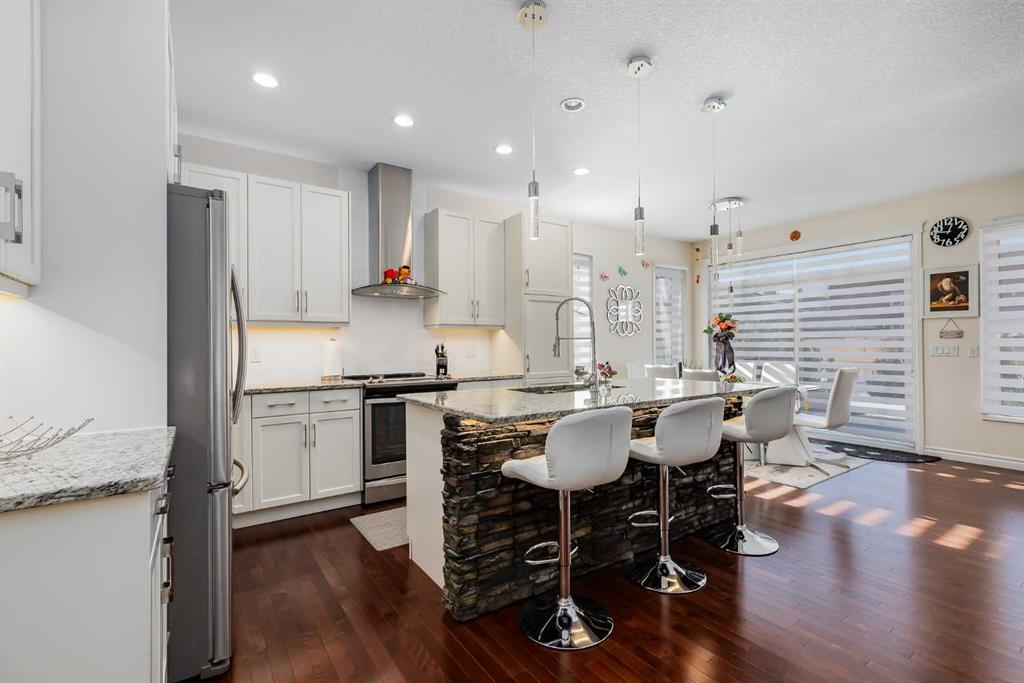Beautiful 2 storey house with double attached garage. Perfect family home. 4 bedrooms in total, 3 & 1/2 bathrooms. Extremely clean and very well maintained. Main floor features gourmet kitchen with upgraded appliances and granite counter tops, spacious living room with stone fireplace, good size dining room with patio door leading to a large deck on sunny west backyard. Big master bedroom upstairs with elegant ensuite bathroom, 2 good size kids room, main bathroom, bonus room and upstairs laundry room. Professionally finished basement with large family room, wet bar, additional bedroom and full bathroom. A lot of upgrades in this lovely home like big windows for brightness, 9 foot ceiling, new roof (2025), newer (2022) hot water tank, new toilets, new smoke detectors, new exterior paint, newly painted deck. Big pie shaped backyard with a nice landscaping. Perfect location on a quiet and safe street, walking distance to shopping plaza, schools and parks.