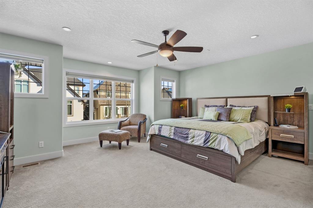 *Open House, Sat. Mar. 7, 1-4pm *Perfectly positioned in the established estate area of Mahogany Waters, directly across from the private West Beach gate for lake access and just steps to a park, this impressive Baywest home offers the ideal blend of size, comfort, and lifestyle, along with the added benefit of quick access in and out of the community. Step inside to a spacious and welcoming tiled entryway that sets the tone for the rest of the home. With nearly 3,200 sq ft above grade, this home offers exceptional space and a bright, airy feel thanks to large windows that allow natural light to pour throughout the main living areas. The main floor is thoughtfully designed for both everyday living and entertaining, featuring a dedicated office that can easily function as a fifth bedroom. The open concept layout seamlessly connects the kitchen, dining, and living areas, creating an inviting space for family and guests. The kitchen is equipped with granite countertops, two toned upgraded cabinetry, a gas cooktop, wall oven, stainless steel appliances, and a butler’s pantry that functions as a prep space and additional storage. The large dining and living areas are anchored by a warm, inviting fireplace, while the covered back patio extends your living space outdoors. The main floor also features a large mudroom and powder room for added functionality. Upstairs, you’ll find four generously sized bedrooms and a bright, versatile bonus room with in ceiling surround sound. A beautiful upgraded railing enhances the staircase and upper hall, adding an elegant architectural touch while allowing even more natural light to flow through the home. The primary suite is a true retreat, offering a large walk in closet and an ensuite complete with heated floors, a soaker tub, tiled shower, and dual sinks. An upper level laundry room with a sink, cabinetry, and additional storage adds everyday convenience. The lower level presents an incredible opportunity to create something truly tailored to your needs with high ceilings and access from the front entry, the layout lends itself well to future multi-generational living, additional living space, or a potential income suite. There is already a framed bedroom, with ample space for for you finishing touches. Additional highlights include an oversized double garage with a bump out for extra storage, smart lighting throughout, dual furnaces with A/C, Vacuflo system, bbq gas line, exterior hot & cold water tap, and a Kinetico water treatment system. The home has been well maintained with care and attention throughout. Beyond the home itself, Mahogany delivers one of Calgary’s most sought after lifestyles, with a 63 acre freshwater lake, private beaches, wetlands, year round recreation, extensive pathways, parks, schools, and vibrant shopping and dining all close by. This is a rare opportunity to own a spacious executive home in one of Mahogany’s most prestigious and established locations. Check out the virtual tour!