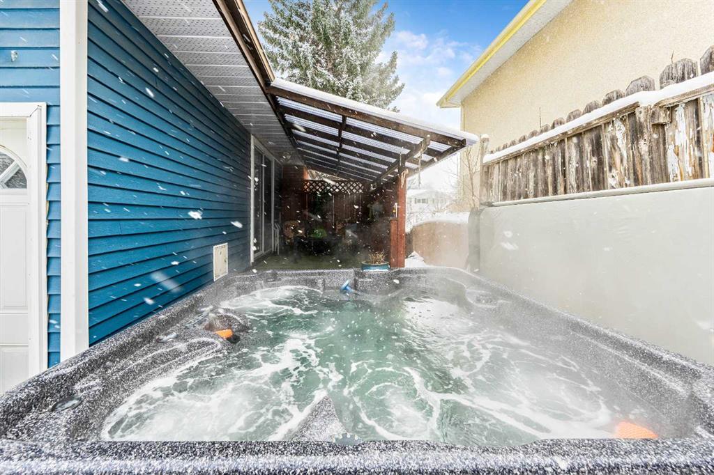 The bright main level features gleaming floors, a modern gourmet kitchen with updated appliances and pantry, and patio doors leading to a covered patio with hot-tub and HUGE backyard. Large triple-pane windows flood the home with natural light, while central air conditioning keeps you cool and comfortable all summer long. Cozy up year-round with your updated gas fireplace, creating the perfect balance of comfort in every season.
