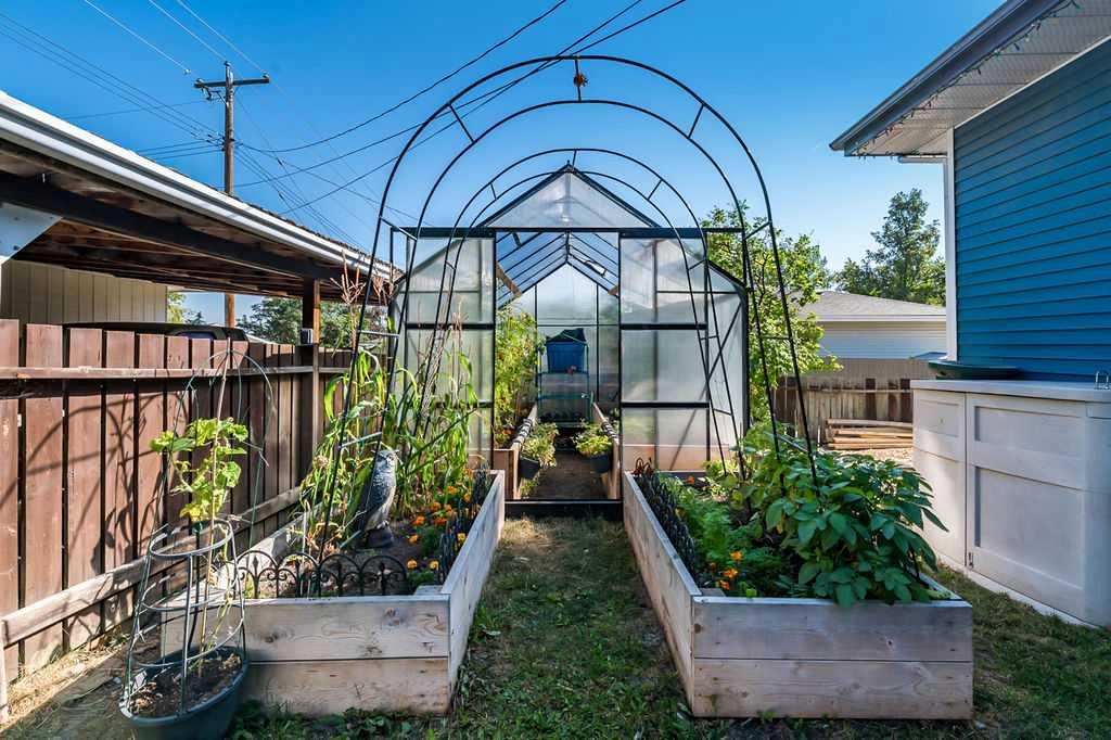 Outside, you’ll love the huge, private yard — complete with mature fruit trees, raspberries, blueberries, and saskatoon berries, plus a greenhouse for those with a green thumb. Whether you're harvesting fresh berries in the summer or enjoying quiet evenings under the covered patio, this outdoor space is both functional and inviting. A single detached garage, large connecting carport, and convenient corner lot access off the alley add even more flexibility and convenience.