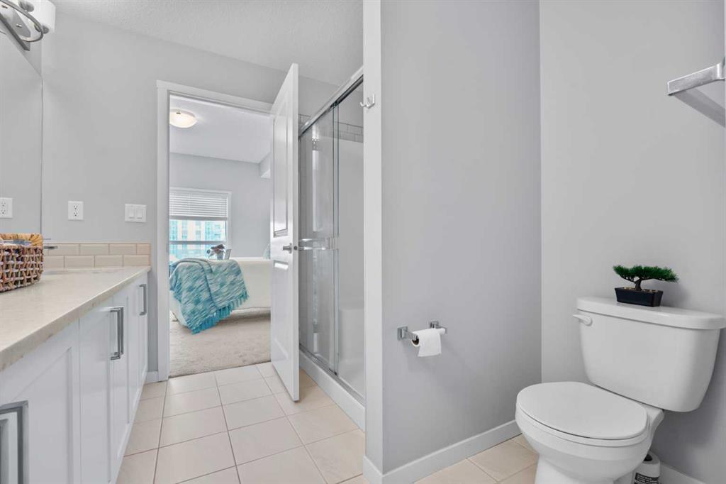 This spacious 2-bedroom, 2-bathroom condo is designed for modern comfort and effortless living. The primary bedroom easily accommodates a king-sized bed with room for side tables and seating , creating a true retreat. The ensuite features a double vanity, generous storage, and a walk-in closet. The kitchen is finished with upgraded quartz countertops, sleek cabinetry, and high-end details that elevate the space. The open-concept layout is bright, functional, and ideal for both daily living and entertaining.