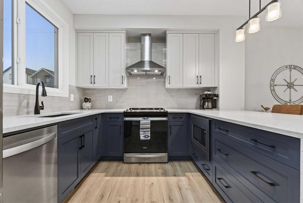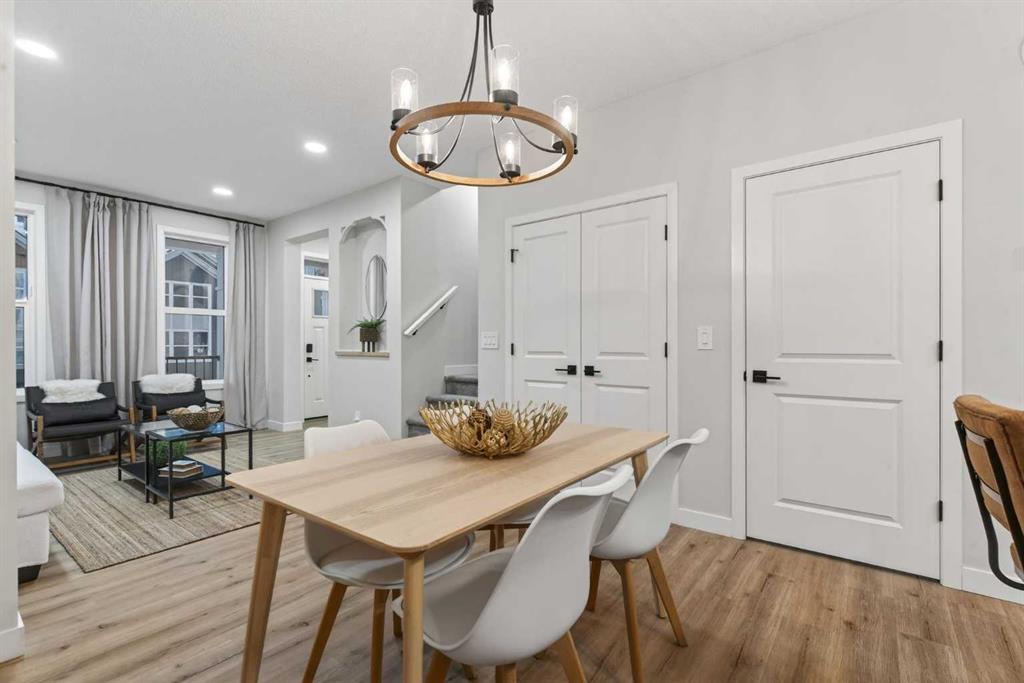Welcome to Rangeview — Calgary’s first Garden-to-Table community where shared gardens, greenhouses and thoughtfully designed green spaces create a lifestyle unlike anywhere else — and here’s your opportunity to own a home that’s truly better than new. This stunning 3-bedroom, 2.5-bathroom home offers 1,666 sq ft of bright, modern living space on a quiet, family-friendly street and features a floorplan that is no longer being built, giving you a rare chance to own a layout that can’t be replicated in current builder inventory. Why wait 8–12 months for construction — and then pay extra for fencing, landscaping, appliances and window coverings — when you can move into a beautifully finished, barely lived-in home today? The sun-filled main floor showcases an open-concept great room, inviting dining area and sleek kitchen designed for entertaining, while upstairs offers three generous bedrooms including a private primary retreat with ensuite and ample counter space, plus convenient upper-floor laundry. Step up to the third-storey balcony to enjoy peek-a-boo mountain views — an elevated bonus that makes this home stand out even more. With a fully fenced yard already complete, builder warranties still in place, basement space ready for your future vision, and a location away from heavy construction traffic and noise, this home delivers immediate enjoyment without the delays, mud or surprise upgrade costs of new construction. Move in now, skip the timeline, and secure a completed, warranty-protected home in one of Calgary’s most exciting growing communities.