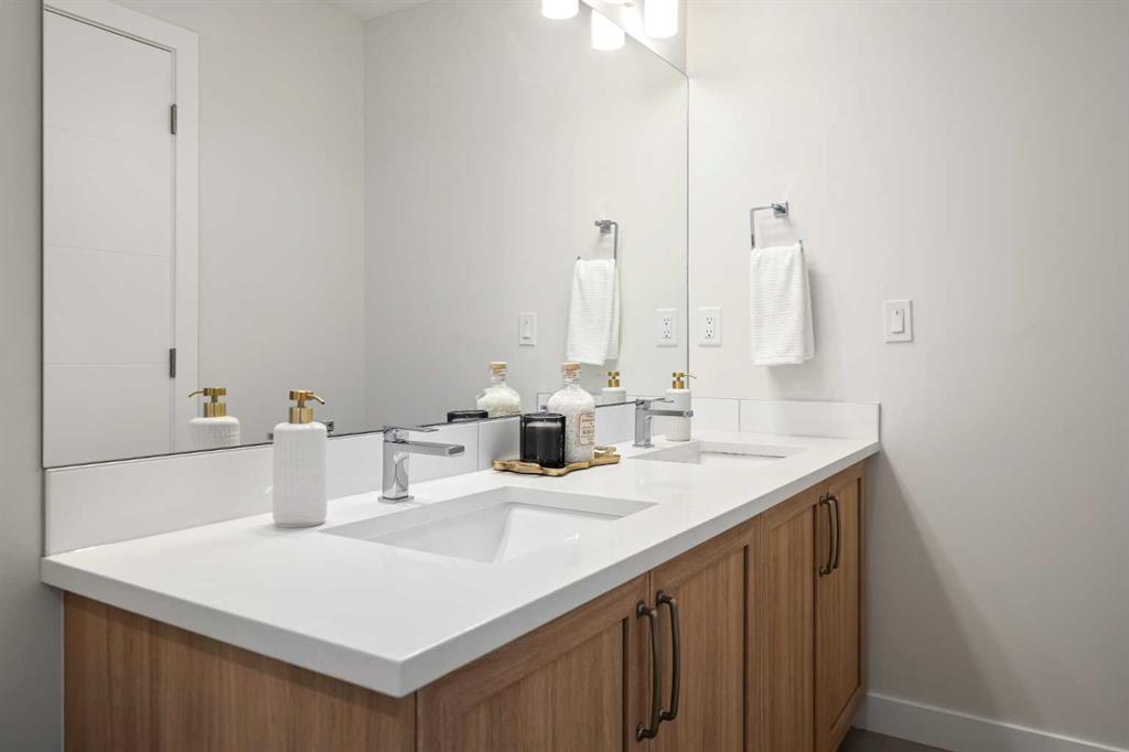 Welcome to The Edward by Partners Homes in Keystone Creek, a former showhome located directly across from green space and featuring a fully developed 2 bedroom, 2 bathroom legal basement suite with a private side entrance. This quick possession home offers exceptional flexibility, strong income potential, and long term value in North Calgary. Designed for homeowners and investors alike, the upper level includes 3 bedrooms, a main floor flex room, and 3 full bathrooms, including a full bathroom on the main level with a fully tiled walk in shower, making it ideal for guests or multi generational living. As a professionally designed showhome, this property stands apart from typical new construction. It showcases upgraded finish selections, custom window coverings, and thoughtful design details throughout. The main floor offers excellent flow, with a front flex room positioned beside the full bathroom. At the rear of the home, the kitchen anchors the open concept layout and features full height two tone cabinetry, upgraded quartz countertops, and enhanced lighting. Clean sightlines connect the kitchen, dining, and living areas, creating a functional and inviting space for everyday living and entertaining. A rear mudroom adds practical storage, and a barbeque gas line is already installed for outdoor use. Upstairs, the primary suite includes a walk in closet and a private ensuite with dual sinks and a tiled walk in shower. Two additional bedrooms are complemented by a centrally located bonus room, offering flexible space for a media room, workspace, or second family area. Upper level laundry and upgraded carpet with premium underlay enhance everyday comfort. The fully developed legal basement suite is a true differentiator. Finished with luxury vinyl plank flooring and its own private entrance, it provides excellent rental income potential or a strong mortgage helper opportunity. Separate mechanical rooms for the basement and the main and upper levels offer added independence and efficiency between living spaces. Additional highlights include quartz surfaces throughout, knockdown ceilings, 9 foot basement ceilings, a 2.5 ton air conditioner, exterior soffit lighting, completed front and back landscaping, and a rear 2 car gravel parking pad. Keystone Creek offers parks, wetlands, walking paths, and convenient access to Stoney Trail, Deerfoot Trail, CrossIron Mills, and YYC International Airport. A former showhome with a legal suite, side entrance, and green space location is a rare opportunity in today’s North Calgary market!