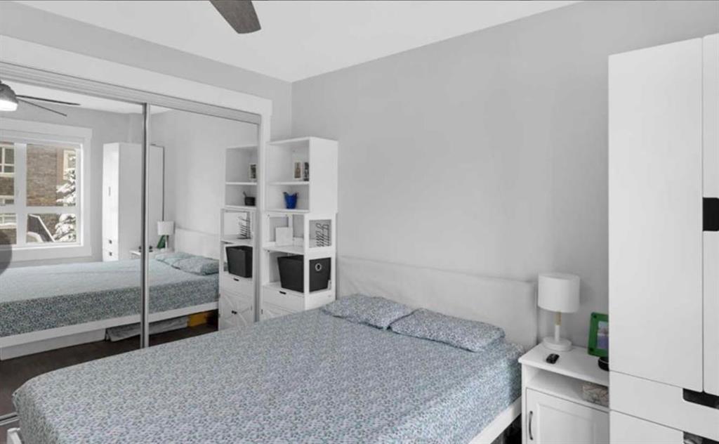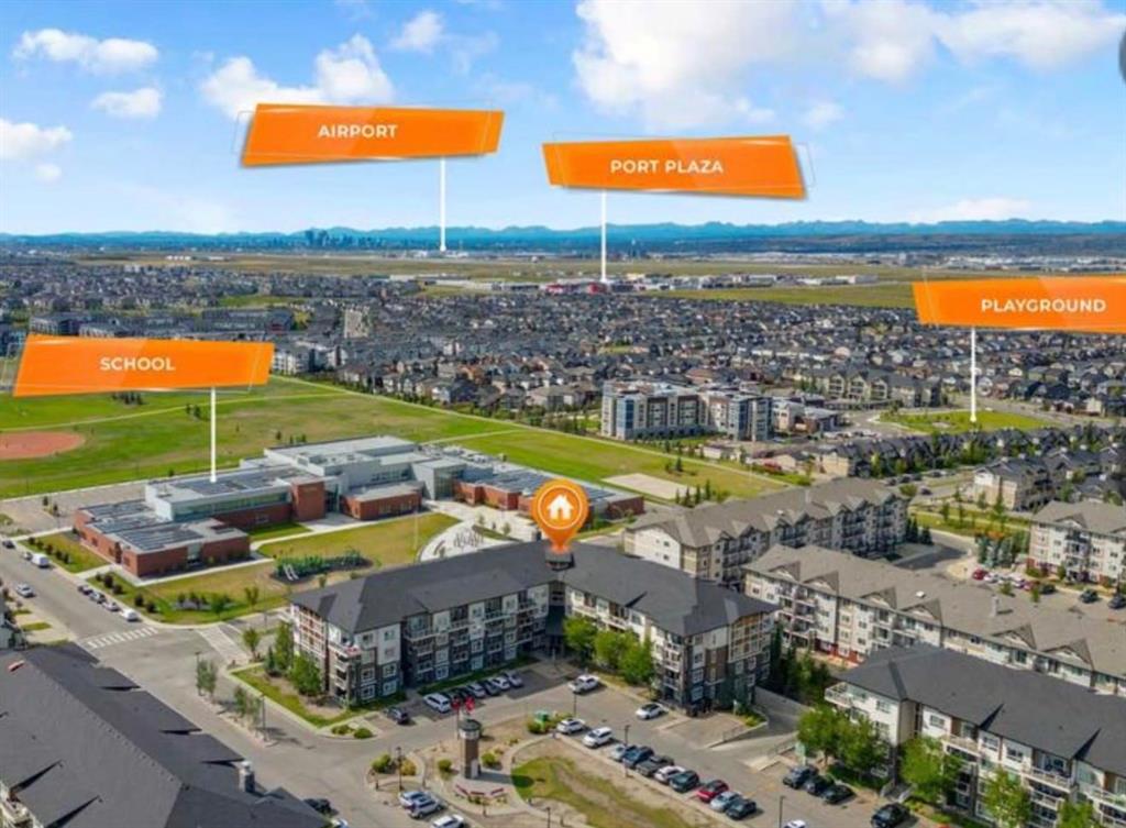Welcome to this beautifully maintained and UPGRADED CORNER UNIT CONDO, located on the second floor offers over 943.5 sq ft of comfortable living space, featuring 2 spacious bedrooms, 2 full bathrooms, and the convenience of titled heated underground parking and secure caged storage locker. As you enter, you’ll be greeted by an open-concept design that includes a well-appointed kitchen, a dining area, and a versatile flex space perfect for an office. The kitchen is a chef’s dream, featuring a large counter with bar seating, granite countertops, stainless steel appliances. The owner has invested over $15k in upgrades including CUSTOM CABINETRY , HALL TREE ENTRYWAY BENCH ,COAT RACK with SHOE STORAGE, SMART LOCK for main DOOR , WATER PURIFIER ,SAMSUNG DISHWASHER, NEW LIGHT FIXTURES( Kitchen and dining) and BOTH WASHROOMS FIXTURES, New VINYL PLANK FLOORING (no carpet) has been installed throughout the unit, PATIO TILES, REMOTE CONTROLLED ZEBRA BLINDS for all windows and CEILINGS FANS in both bedrooms and Living room add extra convenience and comfort and beautiful Balcony to spend time with friends ,enjoying BBQ.Located in the vibrant Skyview Ranch community, this condo offers easy access to local amenities, parks, schools, shopping, and major roadways. Whether you're a first-time homebuyer, a growing family, or someone looking for a modern, low-maintenance property,