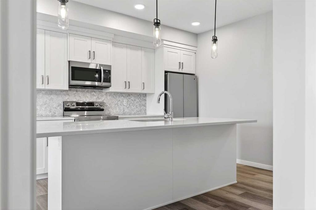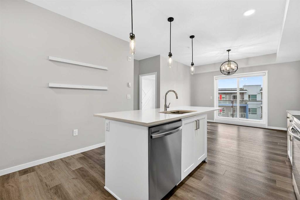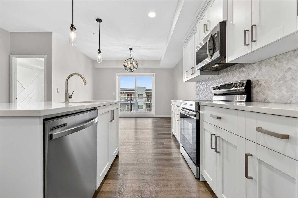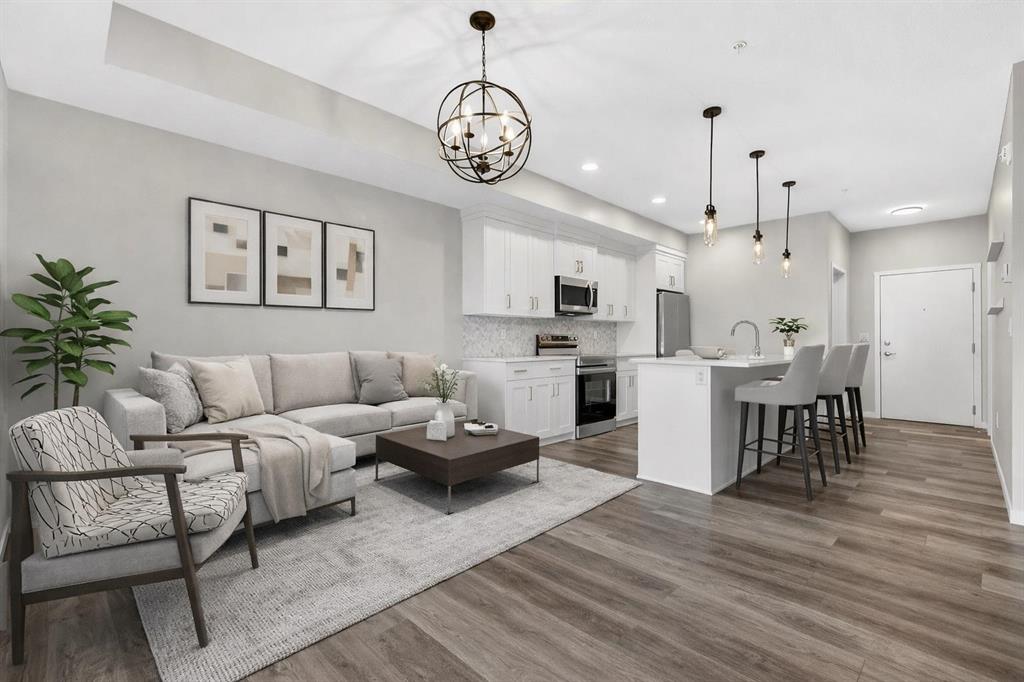 Welcome to Seton Park Place III, where style, convenience and value come together in this beautifully upgraded TOP-FLOOR 2-bedroom condo in Building 2000. Overlooking the peaceful courtyard, this bright and thoughtfully designed 639 sq ft unit offers an open-concept layout enhanced by 9-foot ceilings, large windows and modern finishes throughout, creating a space that feels both comfortable and contemporary. Durable vinyl plank flooring runs throughout the unit complementing the sleek kitchen featuring a massive quartz island that anchors the living space- perfect for entertaining or everyday living. The kitchen flows seamlessly into the living area and out to the private balcony, where upgraded roller blinds on the patio door provide both style and privacy. The primary bedroom is highlighted by a custom feature wall, while the second bedroom offers flexibility for guests, a home office or roommate living. The well-appointed bathroom showcases a full-height tile tub/shower surround, adding a touch of elevated design. Additional upgrades include enhanced lighting and rough-in for future air conditioning, giving you the option to add extra comfort in the years ahead. This home also features in-suite laundry, TWO titled underground parking stalls and an assigned storage locker, offering exceptional convenience rarely found in a condo of this size. Seton Park Place III is a professionally managed, secure building with cameras, low condo fees and a pet-friendly policy (with board approval). Located in the heart of one of Calgary’s most vibrant and walkable communities, you are just steps from South Health Campus, the world-class YMCA, public library, Cineplex, Superstore, restaurants, shops and countless amenities. With quick access to Deerfoot Trail and Stoney Trail, commuting anywhere in the city is effortless. Whether you’re a first-time buyer, investor or downsizer, this top-floor courtyard-facing condo with two titled parking stalls is a rare opportunity to own in one of Calgary’s most sought-after urban communities. *3 of the photos are virtually staged*