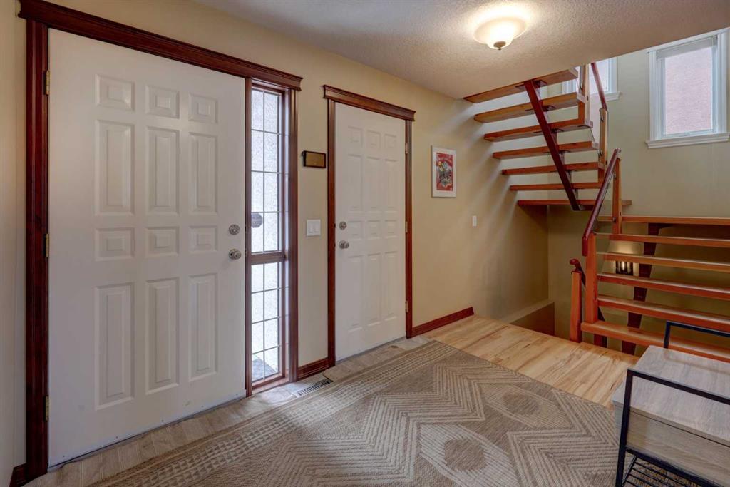 OPEN HOUSE Saturday March 7th, 1-4pm***Quality, refined and artistic design elements add up to this WOW factor! Showcasing premium materials for the discerning buyer…coupled with a quiet location within Westchester Point in Scenic Acres. Over $58,000 of updates over the past few years, comprising of the replacement of Poly B pipes that included the main water service pipe line out to the City street connection (2023). Further inclusions are a newer energy star certified furnace (2023), new garage overhead door (2024), and a new induction cooktop stove (2025). Presenting over 2,500 sq. ft. of total living area with 3 bedrooms, 2.5 bathrooms, developed basement and a beautifully landscaped backyard with a low maintenance composite deck and view out to the ravine beyond. The main floor will draw you in with the hickory hardwood flooring, cherry hardwood baseboards/window & door trim. Carrying into the dining room and continuing on into the custom designed kitchen with solid cherry wood cabinetry, granite countertops, a ceramic farmer apron-front sink, under cabinet lighting, an impressive custom island, a commercial grade hoodfan and SS appliances. A custom made room divider between the kitchen/living room incorporates an artistic element given the red steel, wood & glass materials. The living room houses a larger gas fireplace surrounded with custom tile work and a custom cherry wood mantle. Several interior doors are solid hickory wood including the one of a kind custom sliding door system into the laundry closet. The main floor powder room also showcases a custom cherry wood vanity, mirror and a ceramic farmer apron-front sink. An unforgettable custom open riser staircase with steel and glass railings, incorporates solid Douglas-fir treads. Majority of the upper level features solid cherry hardwood flooring. The Primary bedroom presents a 4 piece ensuite with barn door, soaker tub/separate shower stall along with a walk in closet. While a 4 piece bath services the other 2 bedrooms. An additional artistic element is found on this level with the custom steel/wood & glass guardrail in the landing. The basement includes engineered hand scraped hickory hardwood flooring, a dedicated soundproof space for podcasting or recording, built in cabinetry, solid core door, an abundance of storage, a large rec room easily divided into functional spaces, ceiling speakers, and a rough-in for a future bathroom. Numerous windows have updated triple pane/low E coating. Only steps away from the playground leading into the ravine with pathway system that winds through the community. Walking distance to Bowness Park & Bowness River, Crowchild Twin Arenas, French immersion school @ Ecole du Nouveau-Monde, tennis courts, baseball diamond and City transit. A short drive to the Crowfoot LRT Station, and Crowfoot Crossing Shopping Ctr. with a variety of amenities including Co-Op and Safeway grocery stores, as well as easy access to Crowchild and Stoney Trails. A must see!!