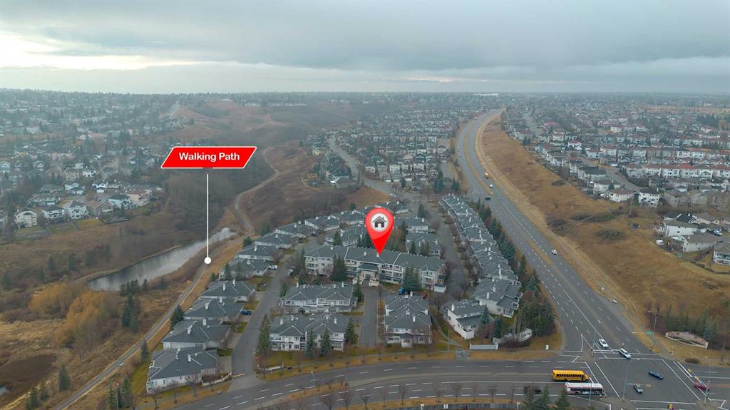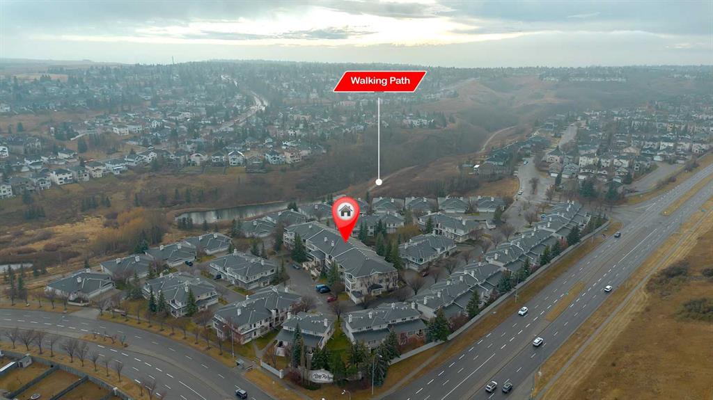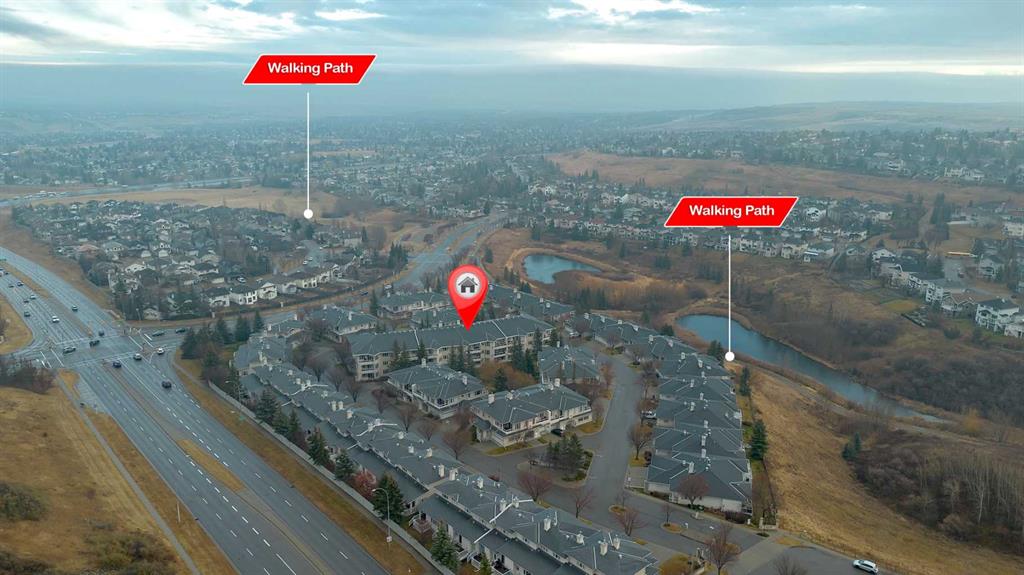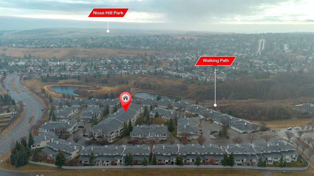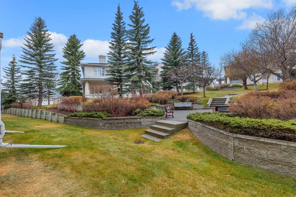 Location, Location, main floor unit backing onto green area. This apartment offers a gas fireplace, 9' ceilings, jetted tub, upgraded toilets,, gas line on patio for bbq, underground titled parking & assigned storage space. Bright open concept offering laundry room, 2 full bathrooms, 2 bedrooms, kitchen that offers a raised eating bar, dining area & a living room that features a gas fireplace with patio doors that access the west facing patio & green space. Click on link to view 3D walk through