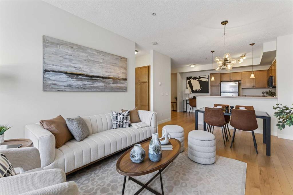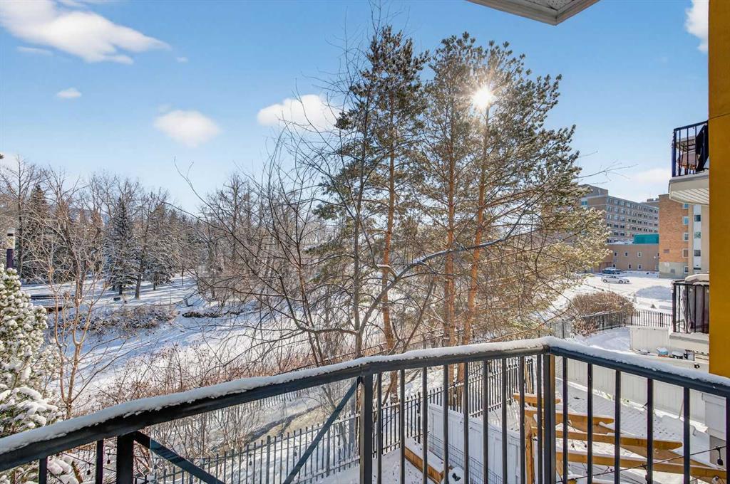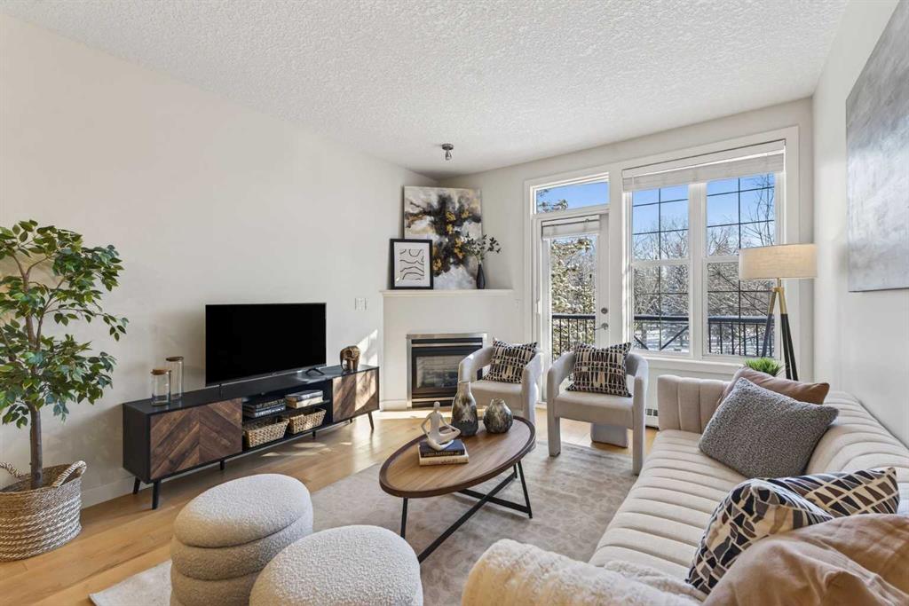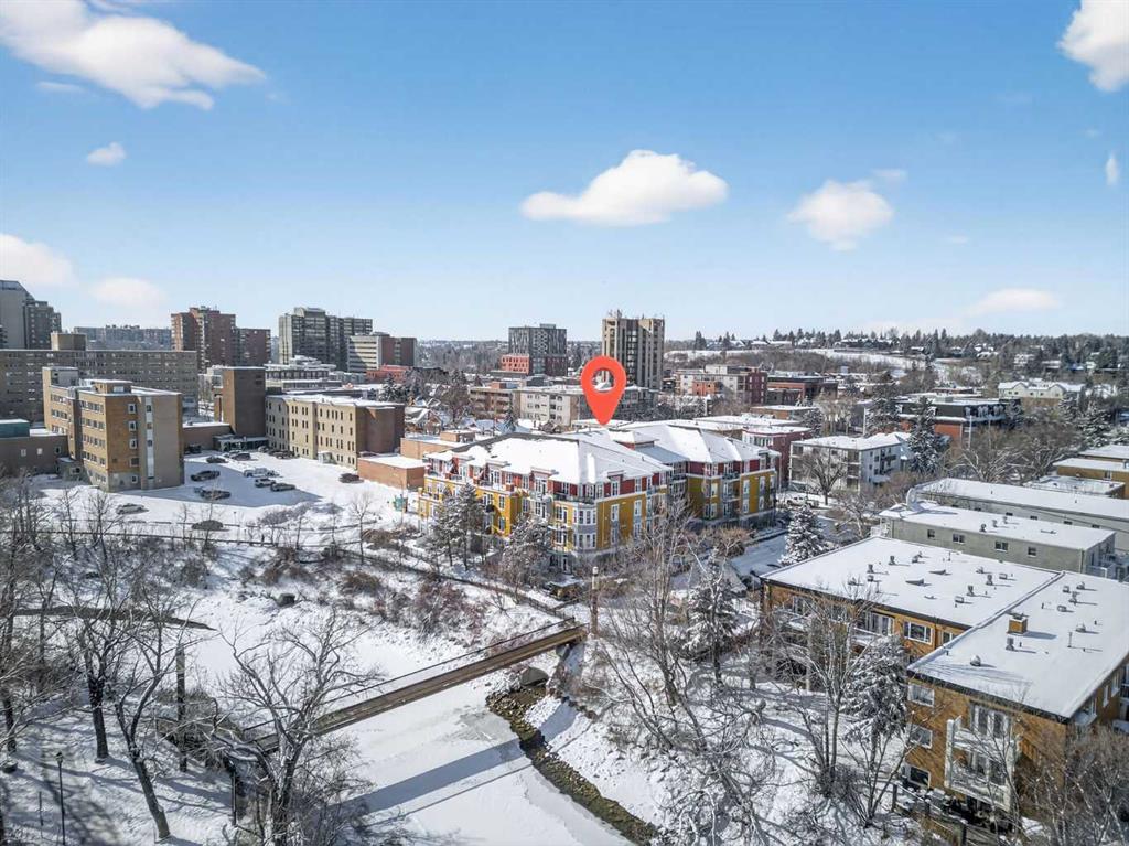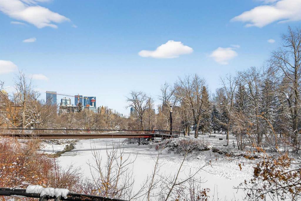 Tucked inside an exclusive boutique building in the heart of Mission, this beautifully refreshed 1-bedroom, 1-bathroom condo offers something truly special. An elevated, private setting overlooking the Elbow River, with peaceful views that transition effortlessly from soft morning light to sparkling city evenings. Freshly professionally painted and featuring newer flooring, the interior feels bright, refined, and completely move-in ready. The thoughtfully designed open-concept layout flows beautifully from a clean, functional kitchen - complete with stainless steel appliances, generous cabinetry + counter space - into a designated dining area perfect for intimate dinners or weekend brunch with friends. The spacious living room is warm and inviting, anchored by a cozy gas fireplace that adds both charm and comfort. From here, step out onto your private balcony - a quiet retreat for morning coffee, journaling, or unwinding with a glass of wine overlooking the river below. A dedicated home office space provides the ideal work-from-home setup, giving you separation and focus without sacrificing your living area. The spacious bedroom is designed with everyday ease in mind, featuring a walk-through closet that leads directly to the bathroom, creating a smart ensuite-style flow you’ll appreciate daily. In-suite laundry adds effortless practicality. Additional features include titled heated underground parking and a separate titled storage locker, ensuring everything has its place. Located just steps from the pedestrian bridge to the MNP Community & Sport Centre, moments from the scenic Elbow River pathway system, and within walking distance to downtown, the boutique shops and award-winning restaurants of 4th Street, and the energy of the 17th Avenue Entertainment District, this address offers the perfect balance of connection and calm. This isn’t just a condo. It’s a peaceful, elevated retreat in the heart of Mission. Refined, private, and effortlessly connected to everything you love about city living.