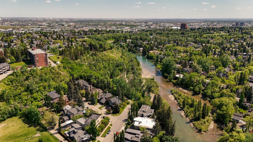 The backyard flows seamlessly into one of Calgary’s most scenic parks, with the Elbow River Pathway just outside your door. Whether for morning jogs or evening strolls, this location is unmatched for lifestyle and connection to nature.