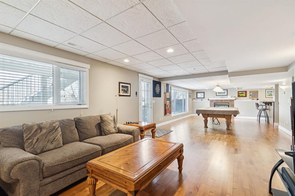 The fully developed walkout basement expands your living space even further with a massive rec room and second fireplace, a pool table, a built-in bar, dedicated gym, large laundry room, abundant storage, and an additional bathroom, perfect for entertaining or relaxing.