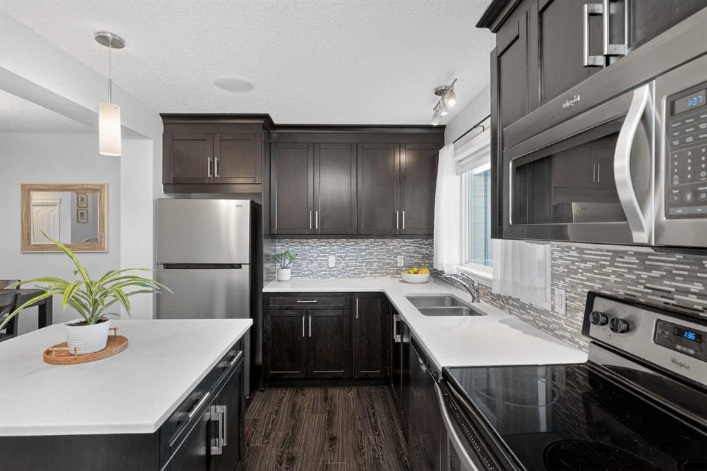 Welcome to this impeccably maintained home in the heart of Auburn Bay, one of Calgary’s premier lake communities. This bright and airy residence features an open-concept main floor designed for seamless entertaining, highlighted by 9’ ceilings, durable laminate flooring, and stylish finishes. The gorgeous kitchen is a standout, boasting espresso cabinetry, sleek quartz countertops, a central island, and stainless steel appliances. A functional mudroom with built-in storage lockers and a half-bath completes the main level. Upstairs, you will find a dual-primary layout. Both oversized bedrooms easily accommodate king-sized furniture and offer private walk-in closets and 4-piece ensuites, providing ultimate comfort and privacy. The living space extends into the developed basement, featuring a versatile multi-use area perfect for a second living room, home office, or guest retreat. The laundry and utility room offers substantial extra storage to keep your home organized. Enjoy summer evenings on your west-facing rear deck, complete with a natural gas BBQ line and a fully fenced yard. The rear double parking pad offers ample space for vehicles, an RV, or a future garage. Modern comforts include central air conditioning and a central vacuum rough-in. Perfectly situated on a quiet street, you are just steps from parks, schools, and the amenities of Auburn Station and Mahogany Village. With the South Calgary Health Campus, Seton, and the world’s largest YMCA within walking distance, this home offers an unparalleled lifestyle in SE Calgary.