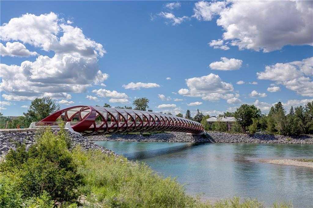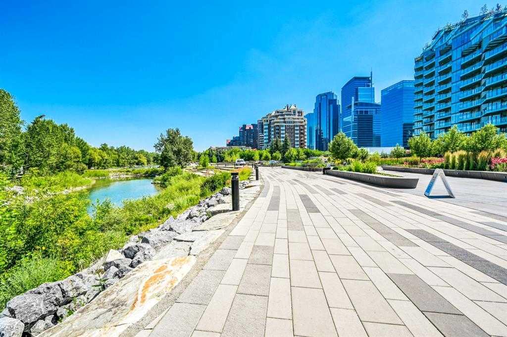 Welcome to the Point on the Bow one of Calgary's finest and most prestigious luxury buildings. Immaculate perfection with this bright and upgraded condominium home with entertaining open floor plan and large south facing floor-to-ceiling windows providing an abundance of natural light. This meticulously well-maintained home was just freshly painted throughout and recently renovated with gorgeous hardwood flooring, 3 pce shower stall and upgraded air conditioning unit. Beautiful open kitchen with large eat-in Island, granite counter tops, stainless steel appliance package, large pantry and plenty of cupboard space. Spacious living and dining areas with gas fireplace and access to large covered balcony with nice views of the Bow River Ravine. Primary bedroom is very spacious with 2nd gas fireplace, walk-in closet, 4 pce ensuite bathroom, jetted soaker tub, shower stall and access to large balcony. Guest bedroom is a good size with corner office area, built-in shelving and double closets. 3 pce main bathroom with renovated shower stall is conveniently located next to guest bedroom. Comes with separate laundry room, washer/dryer stack, rough-in vacuum system, underground titled parking stall and secure storage locker room conveniently located in front of your parking stall close to the elevator! The location is extraordinary situated across from Peace Park on quiet cul-de-sac in West Eau Claire! The luxurious Point on the Bow has an incredible Tropical Atrium Lobby, first-class amenities, full-time concierge service and efficient onsite building manager. The Point Spa amenities include indoor pool, hot tub, fully equipped fitness room, private social lounge with full kitchen, south facing garden terrace with gas bbq, main floor library with billiard table and wet bar, underground visitor parking and fully-equipped car wash bay. The beautiful Tropical Atrium Lobby creates a lush natural garden oasis with extensive ledge stone planters and bridge, 2 impressive granite waterfalls with trickle creek ponds and comfortable seating areas. This amazing lifestyle opportunity can be yours with close proximity to the world-class pathway system, beautiful Prince's Island Park, Bow River and Lagoon, Eau Claire Athletic Club, fine Dining and great Restaurants, Cafes and Pubs, Plus 15 Skywalk System, LRT & Transportation, Peace Bridge and just a short walk to Kensington Shops, Safeway and Calgary's vibrant city center. Time to enjoy the ultimate in downtown urban living!