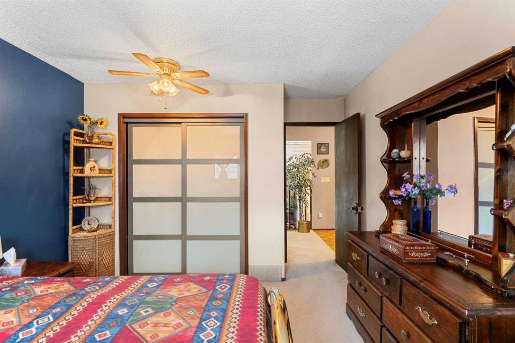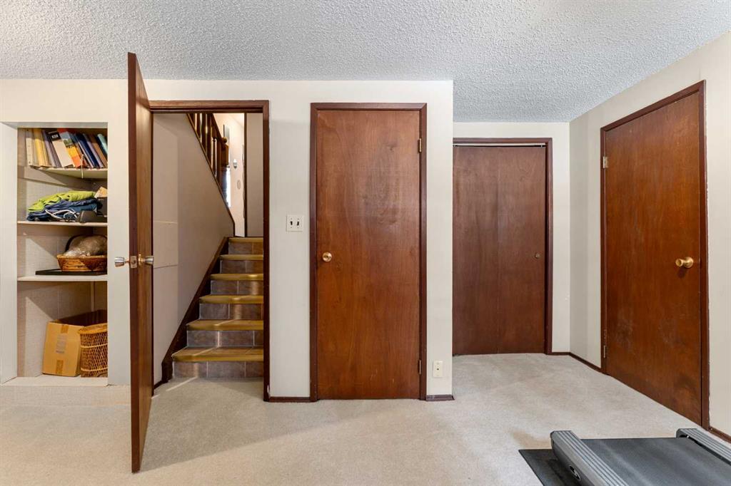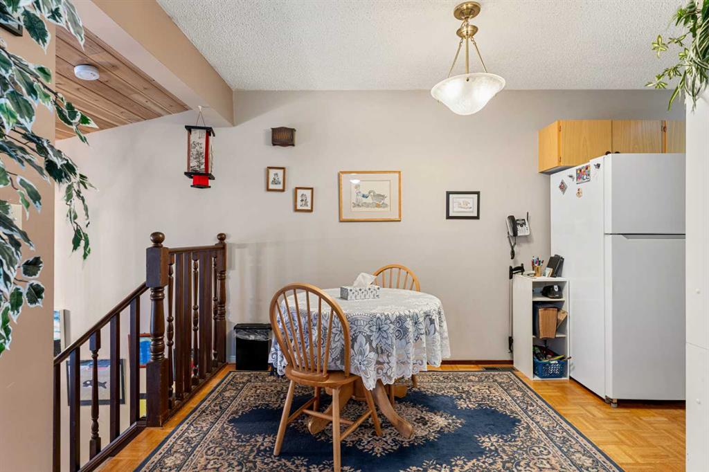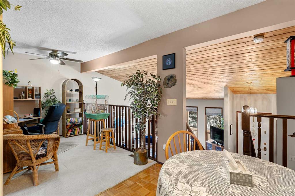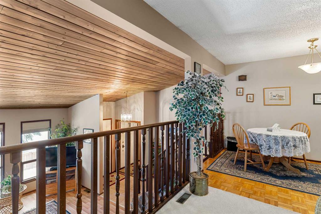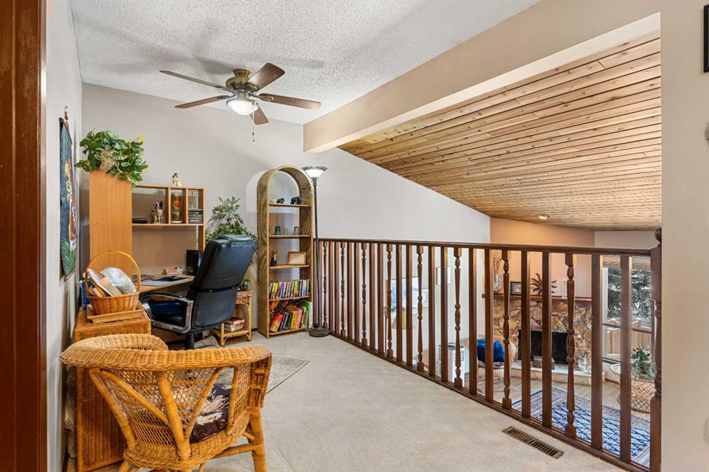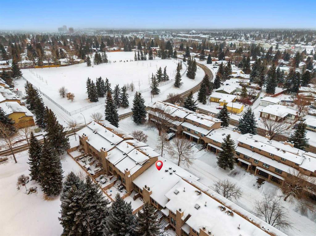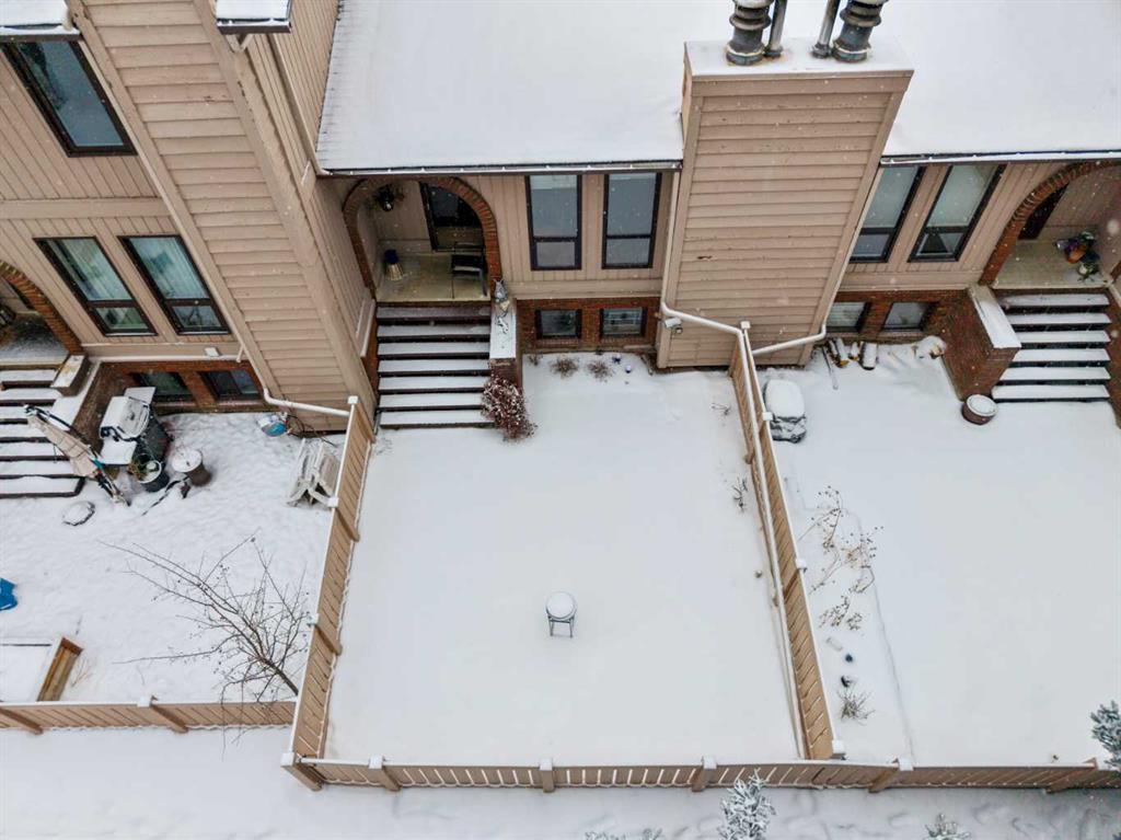 Welcome to this beautifully maintained four-level split townhouse, backing onto courtyard green space, in the heart of Canyon Meadows, in Southwest Calgary! This is a great opportunity to own a property with architectural character, privacy, and an attached garage (with newer garage door!) in a strong location. The main living area is truly impressive, featuring soaring vaulted ceilings that create an open, airy feel filled with natural light along with wood burning fireplace. The unique split-level design offers exceptional flow and separation of space — far more dynamic than a typical condo layout. The Upper level hosts a spacious primary bedroom, with 4-pc ensuite bath, along with a Loft/Mezzanine that is ideal for an office space. Nearby, the convenient Kitchen shares space with a cozy dining area. The Lower level offers a versatile recreation room complete with a closet and extra storage — perfect for guests, a home office, gym, or flex space. Step outside to your private back patio backing onto peaceful green space and a beautifully maintained courtyard framed by mature pine trees. The setting provides rare privacy and a tranquil backdrop that’s often hard to find at this price point. Additional highlights include: Insulated single-car garage with recently upgraded garage door, extra storage shelving, and a well-managed + well-maintained complex. Located steps from minutes from shopping, transit, schools, Fish Creek Park, and major routes, this home delivers outstanding lifestyle value in a mature SW neighborhood. Whether you’re a first-time buyer, downsizer, or investor, this is a smart and stylish opportunity in Canyon Meadows.