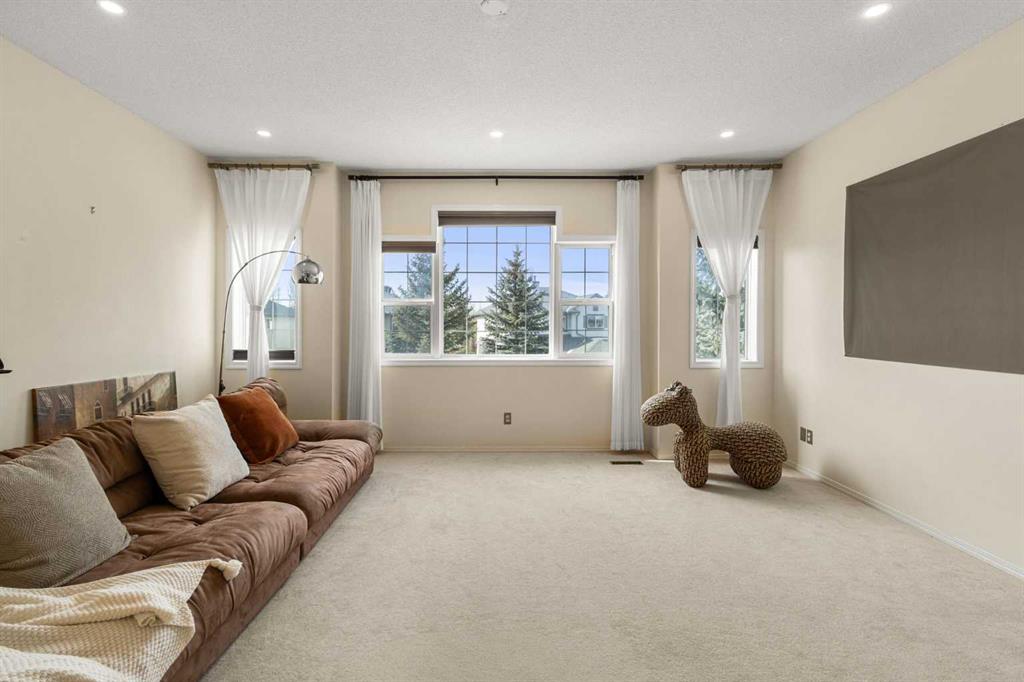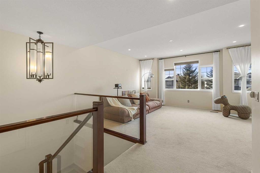 Upstairs features a large and versatile bonus room filled with natural light, offering an ideal space for a media room, home office, or playroom. The upper level also includes a generous primary bedroom with a walk-in closet and a 4-piece ensuite, along with two additional bedrooms and another full bathroom, providing a functional layout for families.