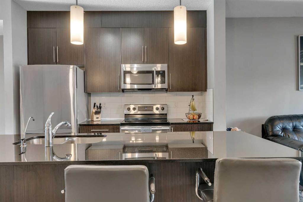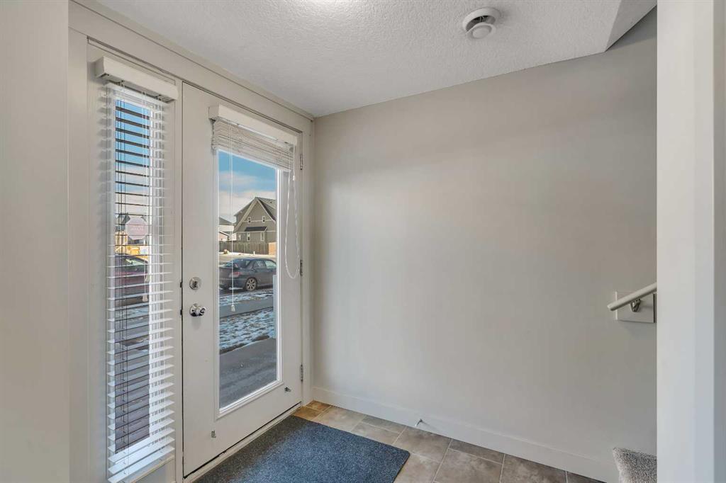 Thoughtfully designed across 1,530 sq ft, this move-in ready 3-storey townhouse delivers functional living in a prime, walkable Skyview Ranch location just steps from Prairie Sky School, transit and endless amenities. An oversized entry-level mudroom creates a practical drop zone for jackets, bags and seasonal storage while providing direct access to the insulated and drywalled Double Attached Garage, keeping vehicles protected year-round. Main living unfolds on the second level where 9’ ceilings and wide plank flooring enhance the sense of space and light. A welcoming living room invites relaxation with sliding doors to the balcony, supporting seamless indoor and outdoor living during warmer months. Nearby, a built-in office area offers a dedicated place to work from home, manage daily tasks or set up homework without sacrificing living space. Designed to anchor the open-concept layout, the kitchen features stainless steel appliances, full-height cabinetry for generous storage and a central island that encourages casual gathering and conversation. Designer lighting defines the adjacent dining area, creating an inviting setting for family meals and hosting friends. A privately tucked powder room adds convenience for guests. Upper-level living is thoughtfully arranged with a spacious primary retreat complete with its own 4-piece ensuite, offering privacy at the end of the day. A second bedroom is complemented by another full 4-piece bathroom, ideal for kids, guests or roommates. A flexible nook easily transitions into a reading corner, study area or play space as needs evolve. Convenient upper-level laundry eliminates the need to carry loads up and down stairs, simplifying everyday routines. Outdoor enjoyment extends beyond the balcony to a front-facing patio, providing an additional place to sit, barbecue or connect with neighbours. Set within Skyview Ranch and framed by big prairie skies, this home enjoys quick access to Deerfoot Trail and Stoney Trail while remaining surrounded by parks, pathways, schools and a wide range of shopping and services, supporting an easy, connected lifestyle.