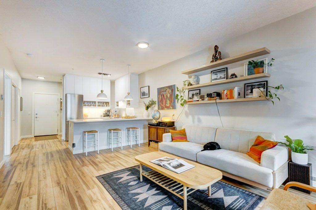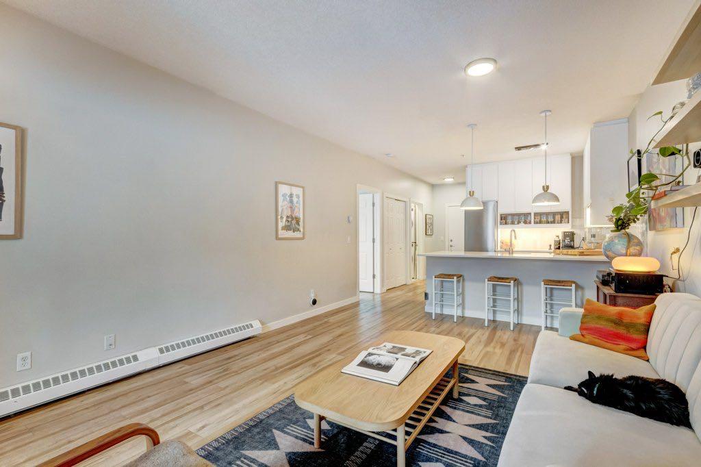 OPEN-HOUSE Saturday March 7th, from 2 to 4pm at 1408, 17th Street SE (Unit 109 in the PEARCE GARDENS). Welcome to the best of INNER-CITY LIVING in the vibrant community of INGLEWOOD. If LIFESTYLE and CONVENIENCE living are high on your list, look no further. This TOTALLY RENOVATED one-bedroom, plus a DEN condo offers just under 700 SQ.FT. of beautifully refreshed living space and feels almost “NEXT TO NEW.” From the moment you step inside, you will appreciate the bright, open layout, tasteful modern finishes, and abundant NATURAL LIGHT that create a warm yet refined atmosphere. Located on the MAIN FLOOR, this home offers the rare advantage of TWO ENTRANCES, including DIRECT ACCESS TO THE OUTSIDE, providing exceptional convenience for guests, quick outings, and everyday living. The thoughtfully designed kitchen features generous counter space and flows seamlessly into the living and dining areas, creating an elegant yet comfortable setting for both relaxing evenings and entertaining friends. The spacious and private BEDROOM offers a peaceful retreat with ample closet space and easy access to the bathroom. Additional highlights include TITLED UNDERGROUND PARKING and a PRIVATE STORAGE LOCKER conveniently located right in front of the parking stall. Facilities include a SOCIAL, PARTY ROOM with a KITCHEN perfect for gatherings, a WELL-EQUIPPED FITNESS ROOM so you can SAVE ON GYM MEMBERSHIP FEES. Best yet, we are PET FRIENDLY, making it ideal for animal lovers. Imagine finishing work, grabbing your bike, heading straight to the nearby BOW RIVER PATHWAYS for a scenic ride along the river or taking your furry friends for a walk. Living in INGLEWOOD means being surrounded by character, culture, and some of Calgary’s best local cafés, restaurants, boutiques, and LIVE MUSIC venues along 9TH AVENUE, all just steps from your door, while DOWNTOWN is only minutes away. Perfect for FIRST-TIME BUYERS, PROFESSIONALS, or INVESTORS, this move-in-ready home offers the perfect blend of STYLE, COMFORT, and URBAN LIFESTYLE in one of Calgary’s most sought-after historic neighbourhoods.