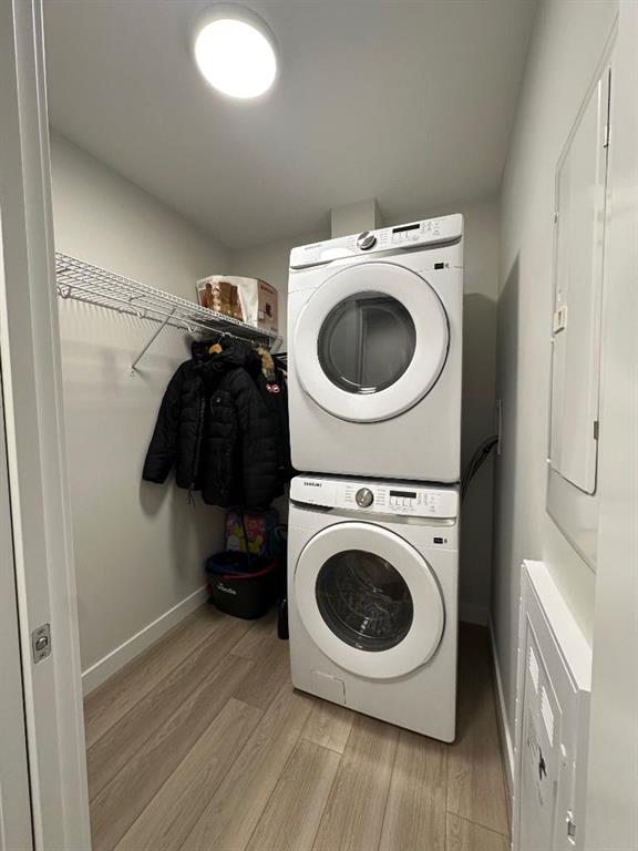 A polished top-floor 1-bedroom + den in The Whitney of Springbank Hill, this upgraded home offers modern finishes, bright open living, and unbeatable walkability. The kitchen features quartz countertops, a full-height quartz backsplash, sleek cabinetry, and a large island with plenty of workspace and storage. Luxury vinyl plank flooring runs throughout, and motorized Alta blinds—controlled through the Bliss Automation app—add effortless convenience. The spacious bedroom includes a walk-in closet, while the den provides the perfect home office or flex space. Air conditioning, 1.5 baths, and in-suite laundry complete the interior. This unit includes titled underground parking and a dedicated storage locker. Located just a 5-minute walk from Aspen Landing, you’re steps from over 50 shops and services including Safeway, Starbucks, Shoppers Drug Mart, restaurants, and banks. Transit, the C-Train, and major routes like 17th Ave SW are moments away, offering a quick 10-minute commute downtown. A rare opportunity to own in one of Calgary’s most desirable west-side communities—modern luxury and everyday convenience come together beautifully in this Springbank Hill gem.