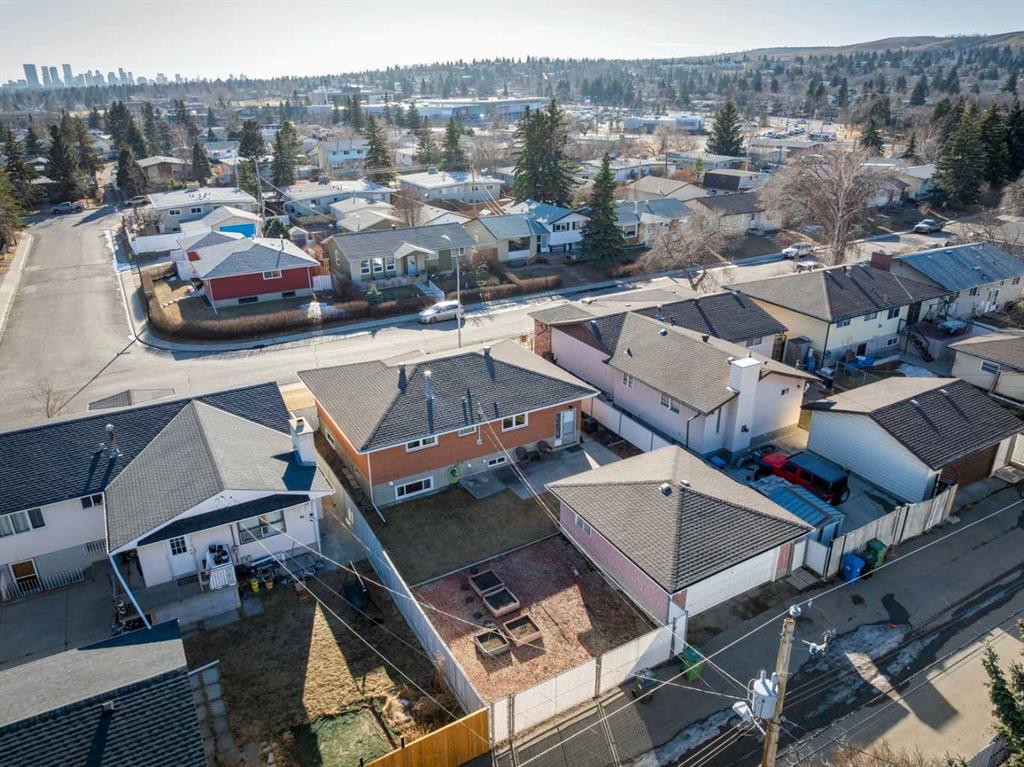 Welcome to this well cared for Nu-West built home located on a quiet, family-friendly street in the heart of Huntington Hills. Loved for its mature landscaping, sunny front porch, and beautiful garden spaces, this property offers outstanding potential for buyers looking to personalize while benefiting from strong structural upgrades and thoughtful maintenance. Step inside to discover newer windows throughout most of the home, original hardwood flooring preserved beneath carpet in two bedrooms, and a spacious layout filled with natural light. The large kitchen featuring abundant cabinetry, a hallway pantry, garburator, and updated range offering plenty of space for everyday living or future renovation plans. The lower level adds flexibility with a bright "summer kitchen" area, generous recreation room with built-in shelving, a four-piece bathroom, tons of storage, including double closets in the den. Outside, enjoy newer shingles on both the home and garage, updated soffits and downspouts, The large double garage and paved rear lane provide excellent access, with additional space for camper parking beside the garage if so desired. Garden boxes and mature flower beds make the backyard a true retreat, while the front porch offers the perfect place to unwind and enjoy the neighborhood. Ideally situated close to neighborhood shopping, Deerfoot Trail, McKnight Boulevard, and everyday amenities, this location is prized for its convenience and strong community feel. A fantastic opportunity in an established northwest community in this well love home!