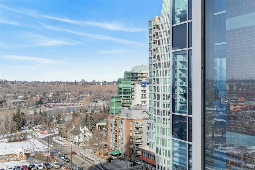 Perched on the 14th floor of Five West Phase II, this sophisticated one-bedroom residence is designed for the young executive who values both momentum and balance. Framed by floor-to-ceiling windows, the space is flooded with natural light and showcases sweeping views of the Bow River and Calgary’s iconic skyline—an inspiring backdrop whether you're starting your morning or winding down after a full day. The open-concept layout creates effortless flow for entertaining or relaxing. A cozy gas fireplace adds warmth and character, while the private balcony becomes your personal vantage point for morning coffee, golden hour sunsets, or simply taking in the city energy below. The kitchen is sleek and functional, featuring granite countertops, stainless steel appliances, and a versatile island with seating, perfect for casual dining, hosting friends, or catching up on emails before heading to the office. In-suite laundry, central air conditioning, a titled underground parking stall, and even a convenient car wash bay in the building ensure your lifestyle runs seamlessly. Step outside and you’re moments from everything that defines downtown Calgary living. Walk to Prince’s Island Park for a midday run or weekend festival, cycle along the Bow River Pathway, or meet colleagues for dinner in Kensington. With the downtown core at your doorstep, commuting becomes optional—and convenience becomes standard. This is more than a condo. It’s a statement of lifestyle, where career ambition meets riverside tranquility, and every view reminds you why you chose to live at the centre of it all.