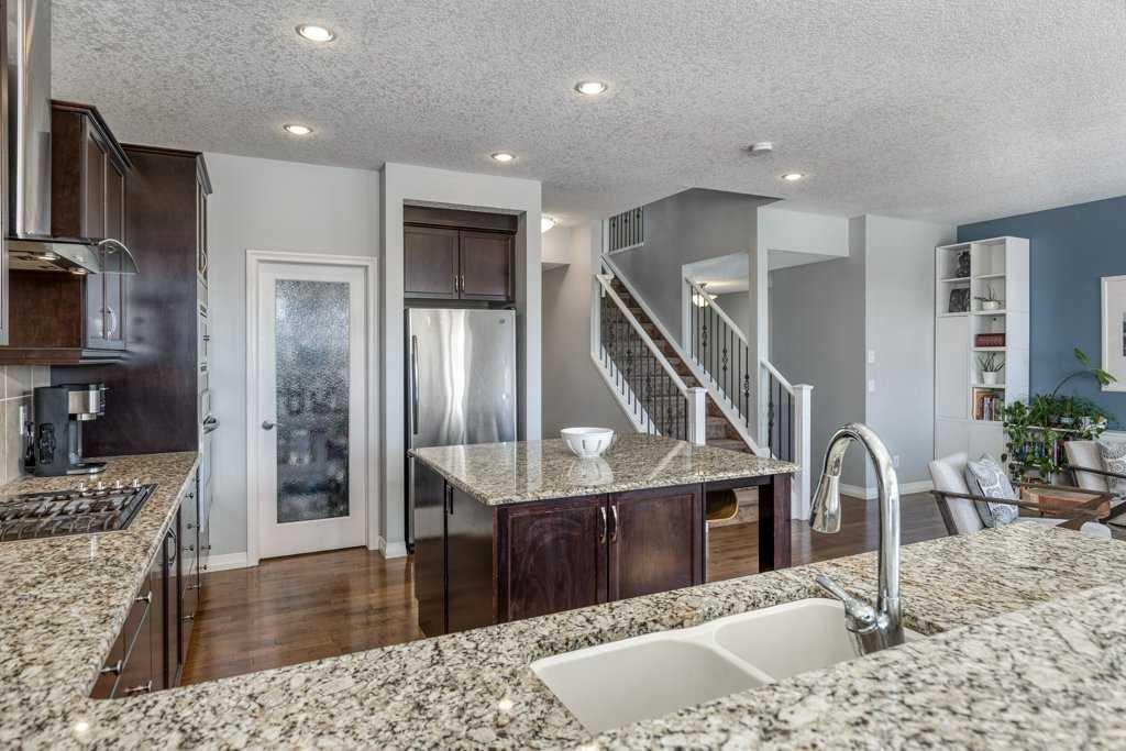 Stunning Mountain View Walkout in Sunset Ridge||Welcome to this exceptional two-storey walkout home in the highly sought-after community of Sunset Ridge in Cochrane, offering breathtaking mountain views from all three levels and backing directly onto a park—an ideal setting for families who value space, serenity, and community. From the moment you arrive, the expansive views set the tone for this special property. Inside, a large foyer with ceramic tile welcomes you and leads into a bright open-concept main floor featuring warm hardwood flooring throughout the kitchen, dining, and living areas. Designed for both everyday living and entertaining, the spacious kitchen offers abundant cabinetry, a large island, and raised breakfast bar seating. The dining area opens onto the back deck where you can soak in the panoramic mountain vistas, watch the kids play in the park behind, or enjoy grilling with friends using the natural gas BBQ hookup. The inviting living room features a gas fireplace, creating a warm and comfortable gathering space while taking in the spectacular views. Upstairs, the home continues to impress with a thoughtfully designed layout. The upper level includes three bedrooms, a huge bonus room with soaring 10-foot ceilings, a convenient laundry room, and a dedicated tech desk with two workspaces—perfect for homework, remote work, or family organization. The primary suite is a true retreat, featuring breathtaking mountain views, ample space for a king-sized bed, and a practical five-piece ensuite bathroom that leads to your walk-in closet.