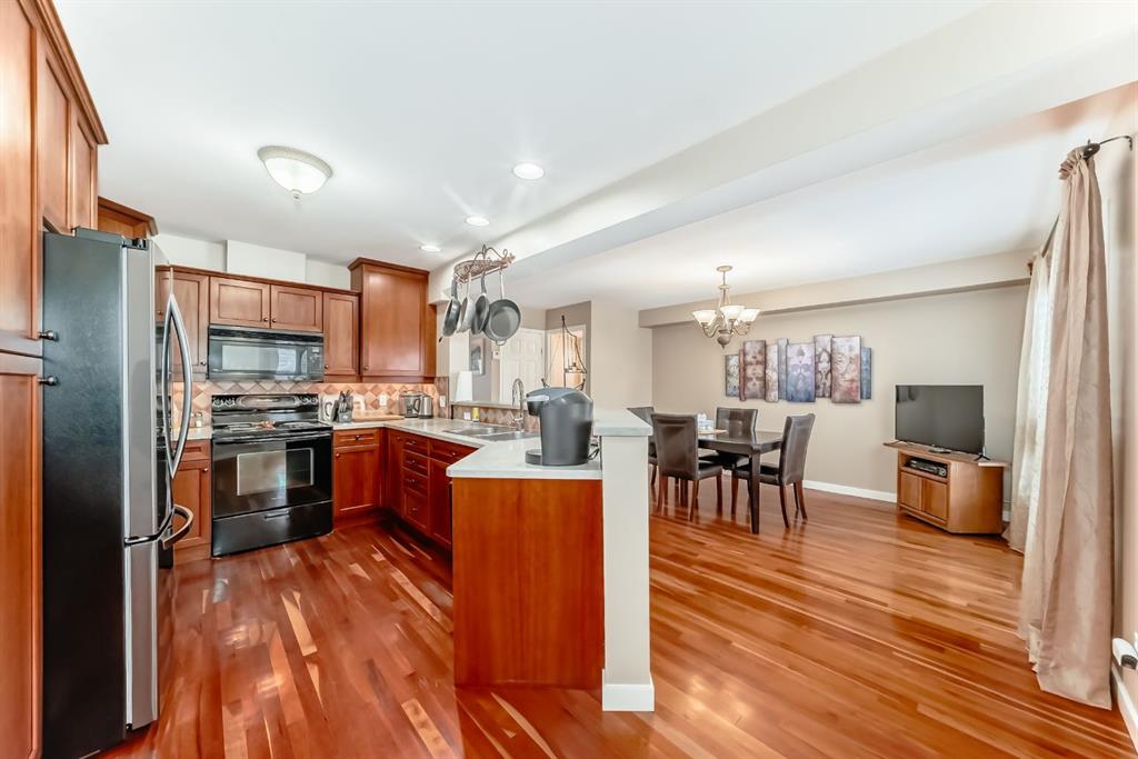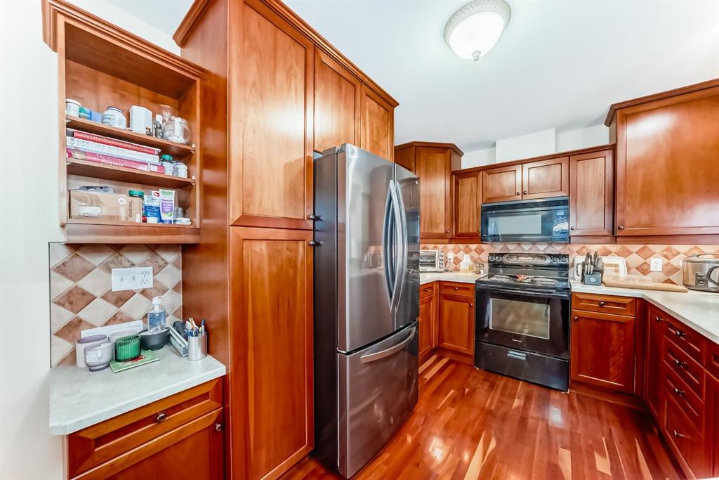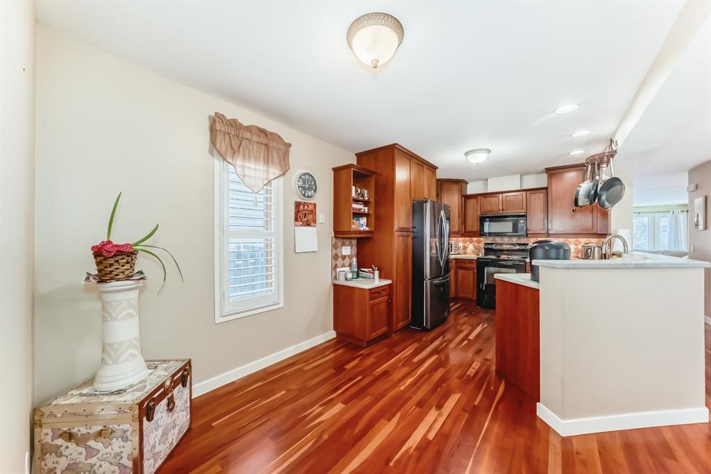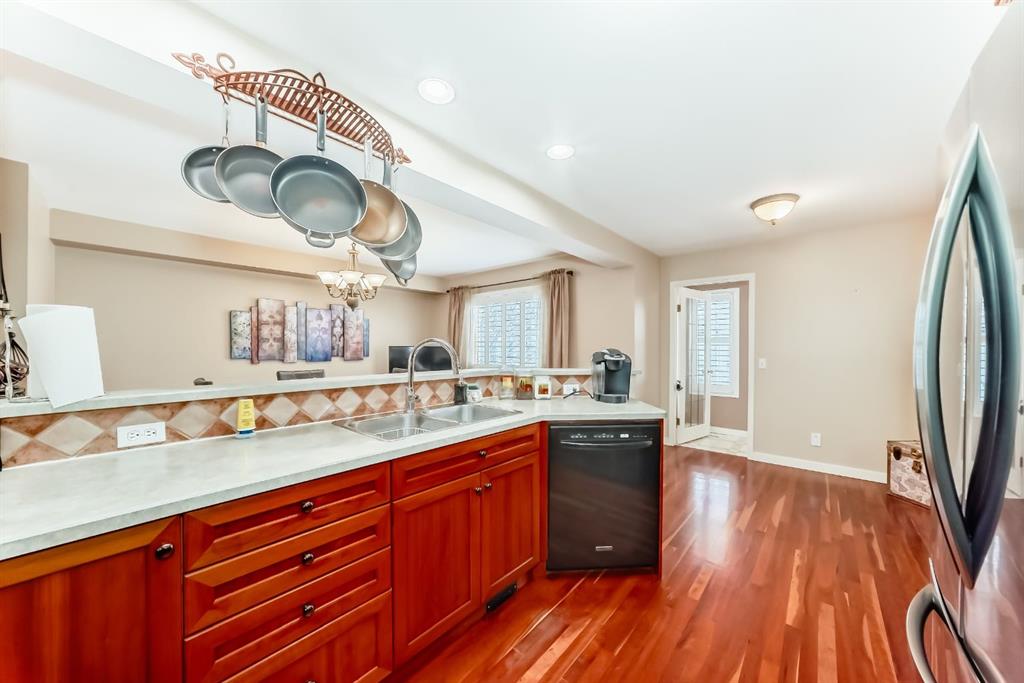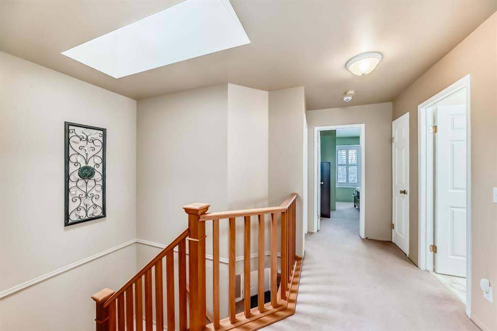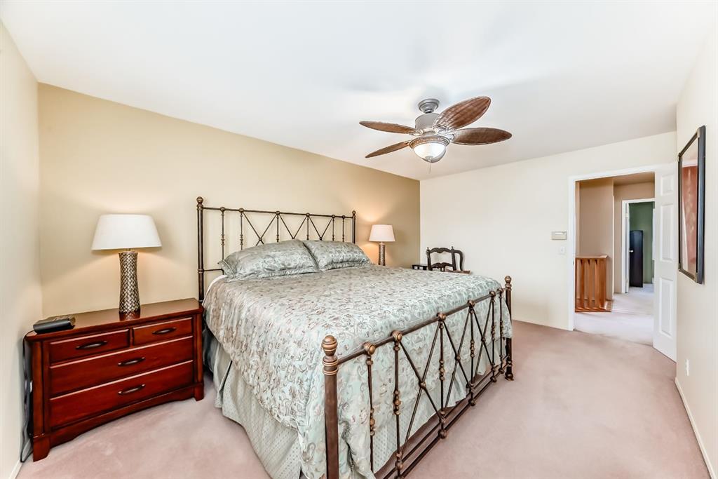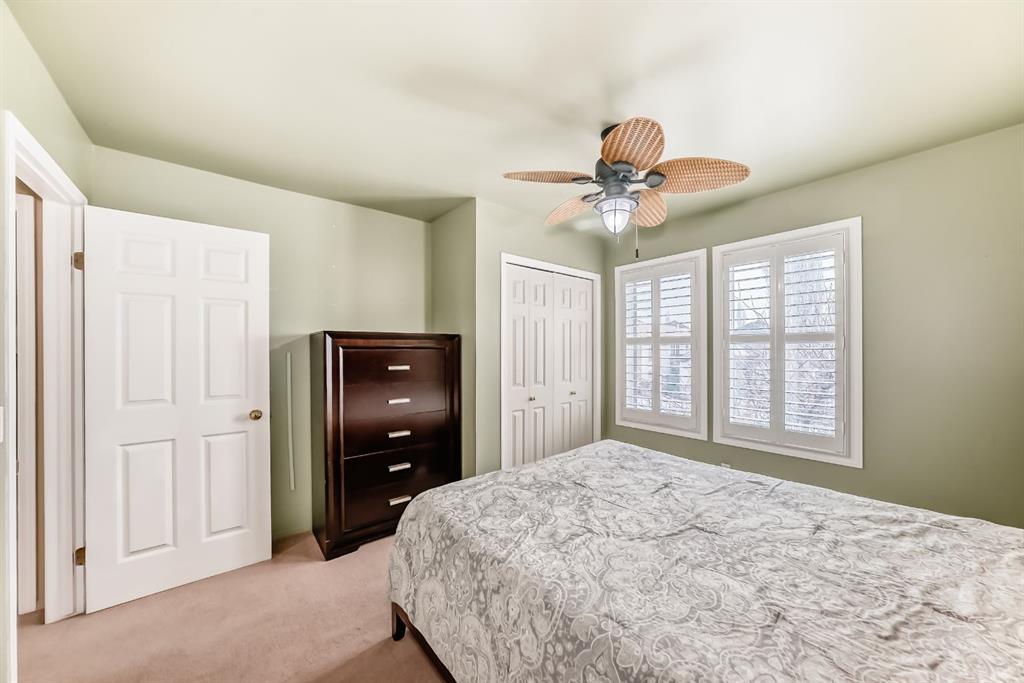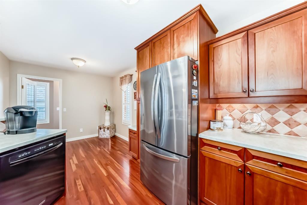 This 1,784 sq. ft. home is situated on an extra-length 4,499 sq. ft. lot on a quiet street near local parks. The interior features cherry hardwood flooring and a kitchen with solid wood Merritt cabinetry, under-cabinet lighting, and a new refrigerator (2024). A central skylight over the stairwell provides natural light to the upper level, which includes three bedrooms and an enclosed computer nook designed for use as a private office or library. The oversized primary suite accommodates a chaise lounge and features an ensuite with a deep soaker tub. The finished basement adds a fourth bedroom and a full bathroom. For the hobbyist, the oversized 2x6 construction double garage w 9ft ceilings includes a separate electrical panel with 220V power and a natural gas line ready for a heater connection. Attached to the garage is an unfinished 10x10 studio room, currently used for motorcycle parking, offering potential for a workshop or hobby space. The south-facing yard is landscaped with a stamped concrete patio, a covered deck, and new concrete paver stones ready to be installed in the front flower beds. Maintenance updates include 60% new metal-clad UV-coated casement windows (2020), a new roof, skylight, and gutters (2017), and a new hot water tank (2017). The exterior front steps and railing were replaced in 2023, with the back porch steps and railing updated in 2024. Functional features include a laundry chute from the second floor to the basement, a gas fireplace, a humidifier (2023), and an alarm system. This property offers a functional layout and quality finishes in a quiet residential setting.