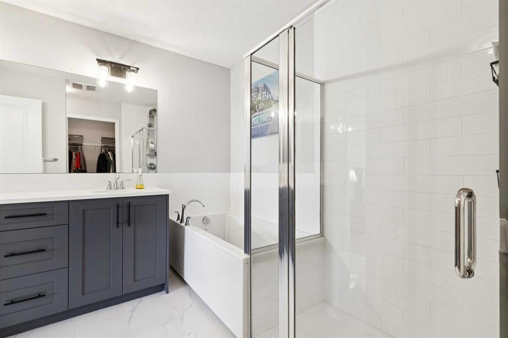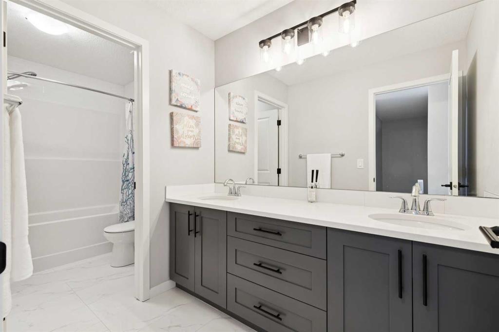 JUST LISTED in WEST SPRINGS! This FULLY FINISHED “TURN KEY” 2 storey built in 2019 is located near the end of a QUIET CUL-DE-SAC LOCATION! Walking distance to great schools & amenities! EXECUTIVE FINISHINGS throughout including HIGH 9’ CEILINGS, 8’ INTERIOR DOORS, wide open floor plan, LOADS OF WHITE CEILING HEIGHT KITCHEN CABINETRY. There is QUARTZ COUNTERTOPS, soft close drawers, 5 burner GAS RANGE, massive island, BUILT-IN MICROWAVE, large corner pantry, ENGINEERED HARDWOOD FLOORING, and fireplace! White spindle railings leads to the upper level with LVP FLOORING, HUGE BONUS ROOM, UPPER FLOOR LAUNDRY, guest bathroom with 2 sinks, and 3 large bedrooms with walk-ins closets including the king sized primary, beautiful 5 PCE ensuite with standup shower and deep soaker tub. The lower level is beautifully finished with HIGH 9’ CEILINGS, large recreation room, 4th bedroom, 4 PCE bathroom, large windows, and huge mechanical room for plenty of storage. The DOUBLE ATTACHED GARAGE is large enough to fit a full sized truck! So many extras in this home - CENTRAL AIR CONDITIONING (2023), high efficient tankless water heater, triple pane windows, knockdown ceiling texture, pot lights, water softener, custom window coverings, maintenance free vinyl fence, the list goes on and on! $999,900. Book your showing as this property shows 10/10, is priced to sell and will not last long!