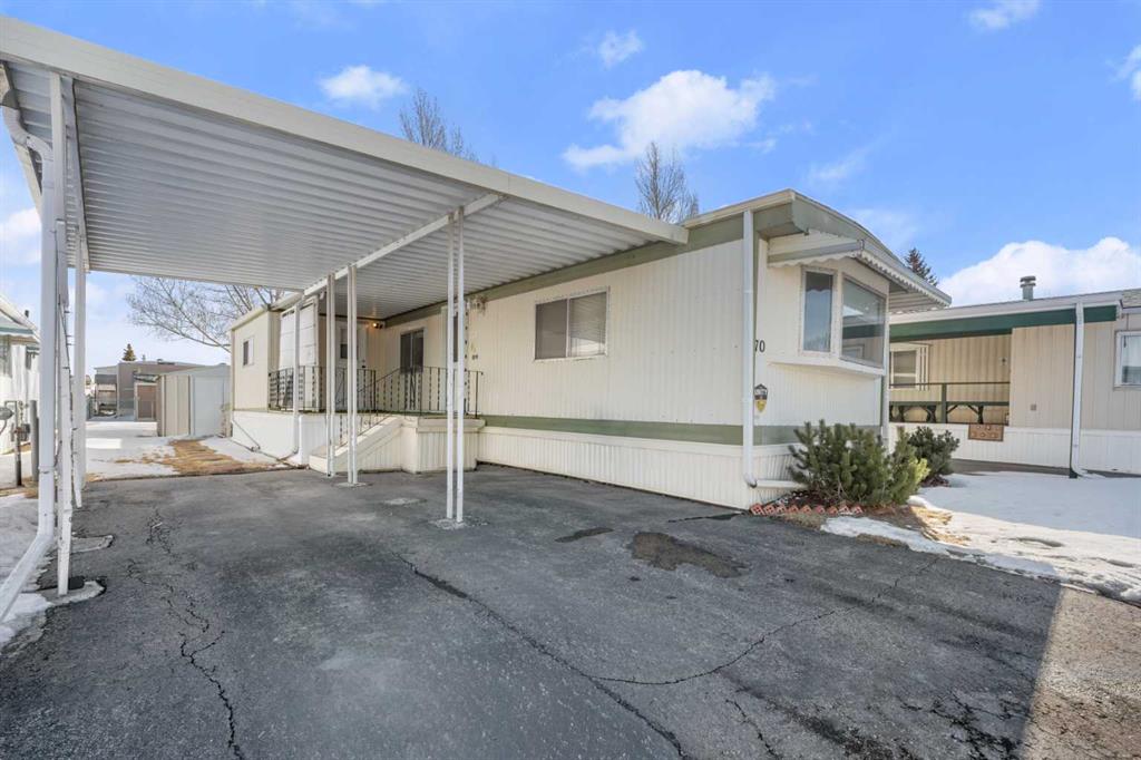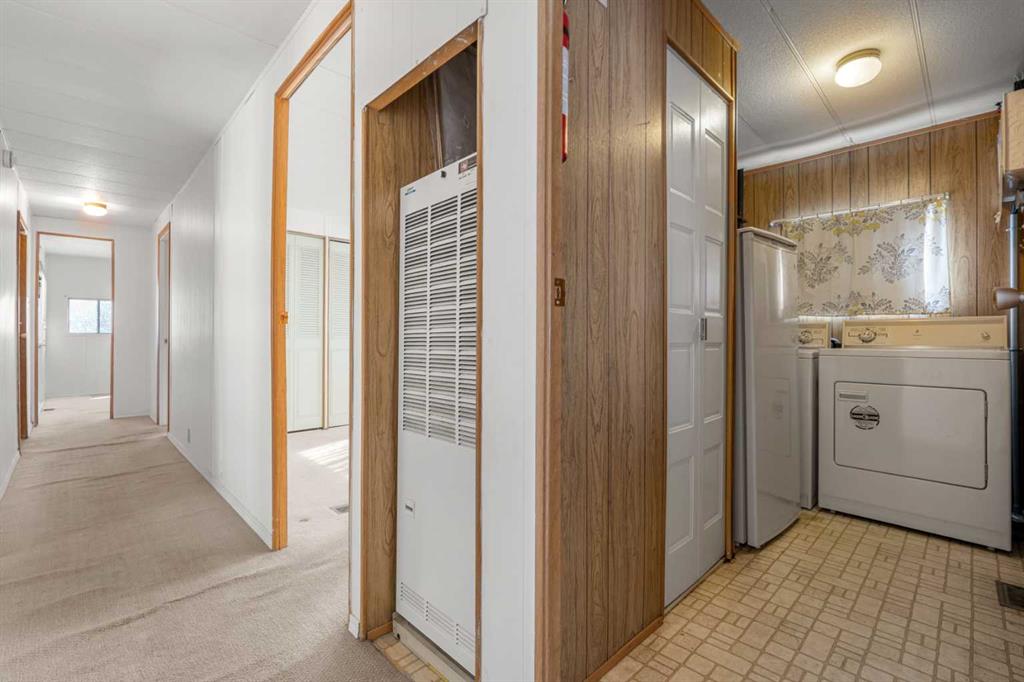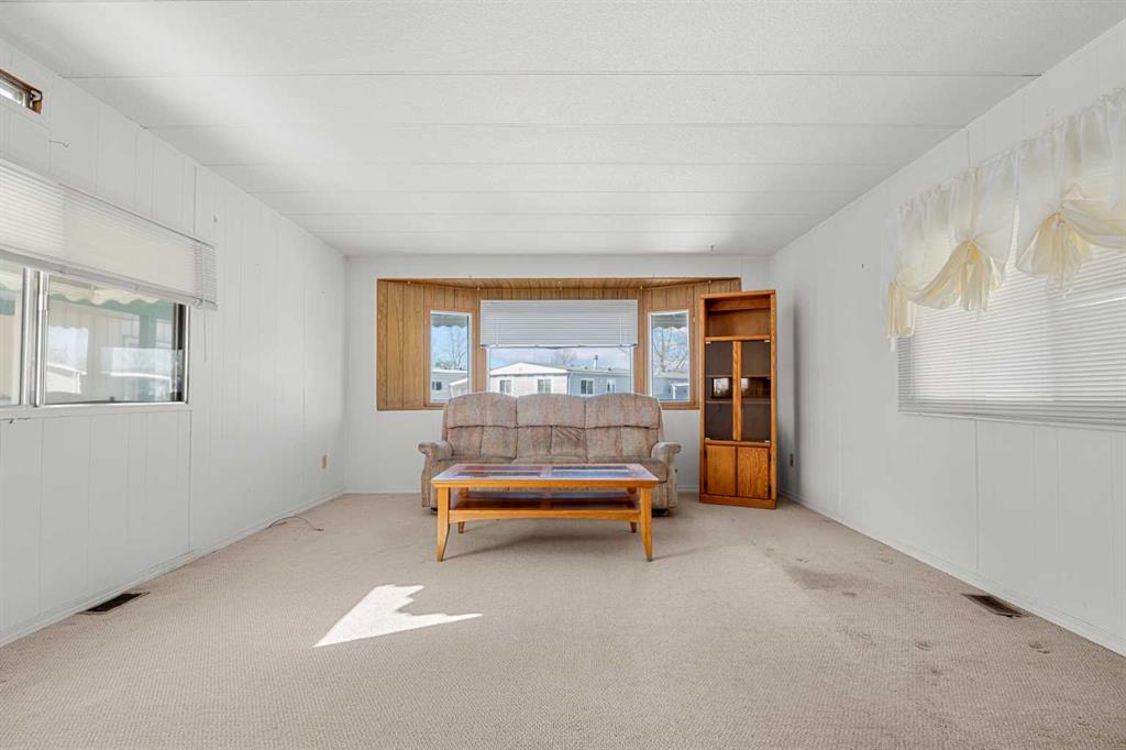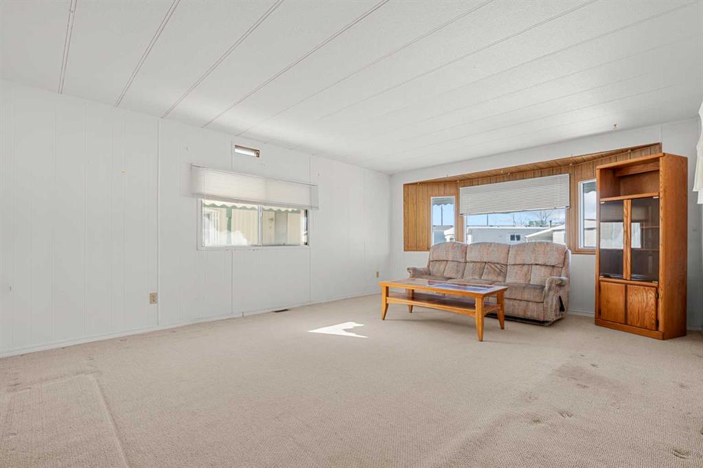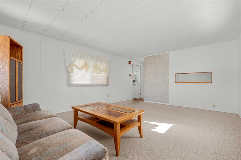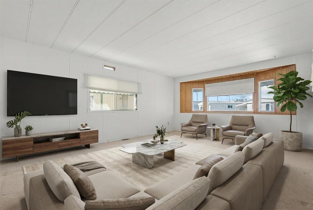 Great value in Watergrove, the premiere 45+ mobile home park in Calgary, boasting a fabulous clubhouse, outdoor pool, sauna, recreation room/party room, billiard room, and enough activities to keep you busy every single day! This 2 bedroom (could be converted to 3), 1 bath home has been lovingly cared for and it shows. The kitchen has wood cabinets, pantry, fridge and stove, and a good size dining area. The large living room easily accommodates a variety of furniture options, with a large front window and 2 additional side windows to bring in the natural light. This floorplan offers a separate laundry room (room for an extra fridge or freezer) large primary bedroom, a second large bedroom which can be converted to two rooms, providing lots of options for a spare room, flex room, etc. The full bath has a Safe Step walk-in tub (with a shower head). There is an on-demand hot water system, the furnace has been recently serviced, an updated Eaton electrical panel cover, and in 2023 the roof was serviced with a roll-on shingle sheathing application. This home has a very functional layout and includes an addition suitable for a bedroom, flex room or utility room. A large covered porch is perfect for your morning coffee, and the large carport protects your vehicles from the elements. Located in a cul-de-sac location, close to the greenspace, and in an amenity filled community – this home is just waiting for its new owner. Nearby Crowfoot Centre provides every amenity you can imagine. Immediate possession is available. Lot fee of $905 includes water/sewer, garbage pickup and recycling. Lease and pet approval is required.
