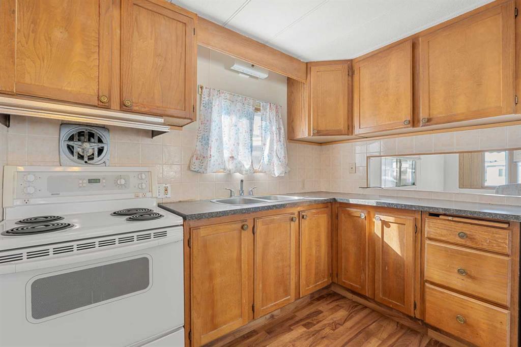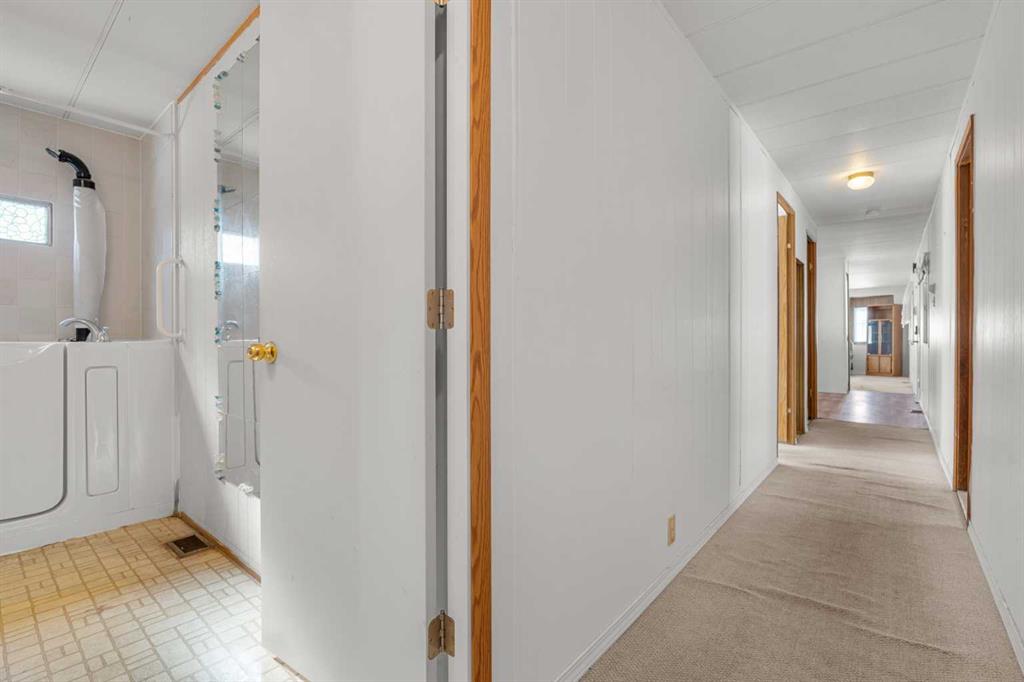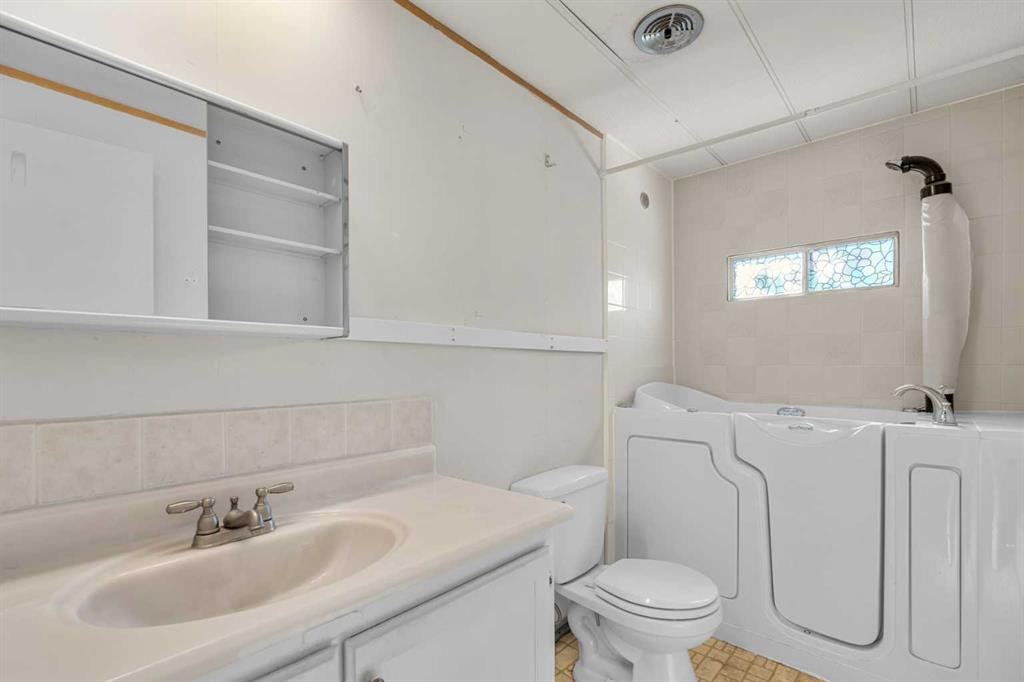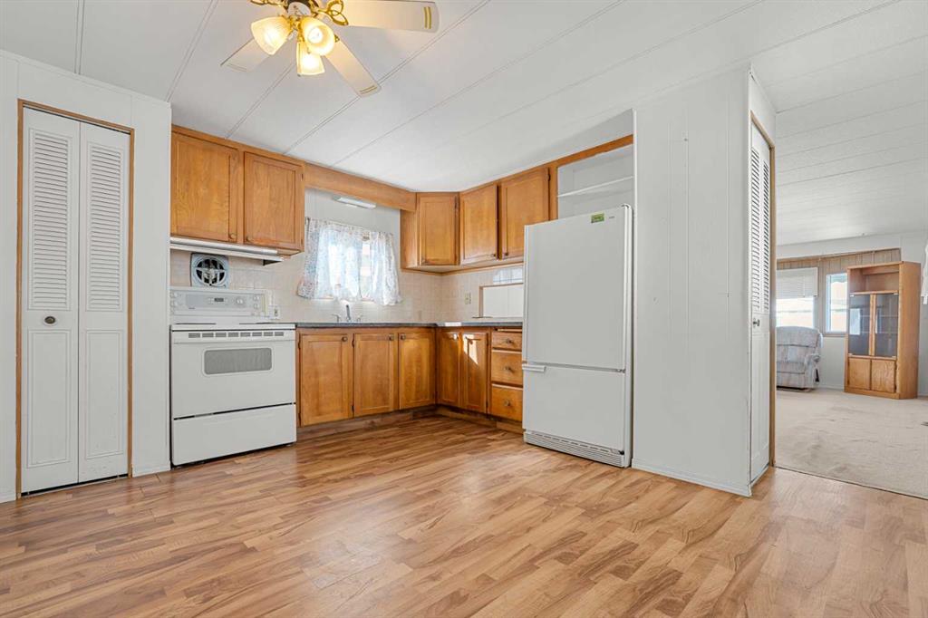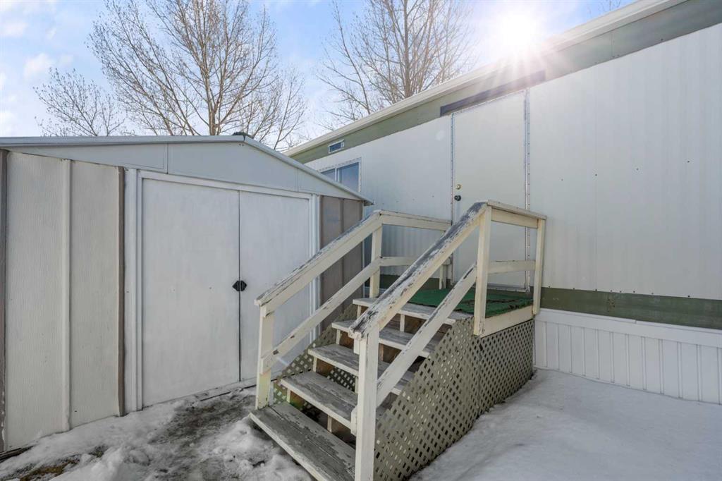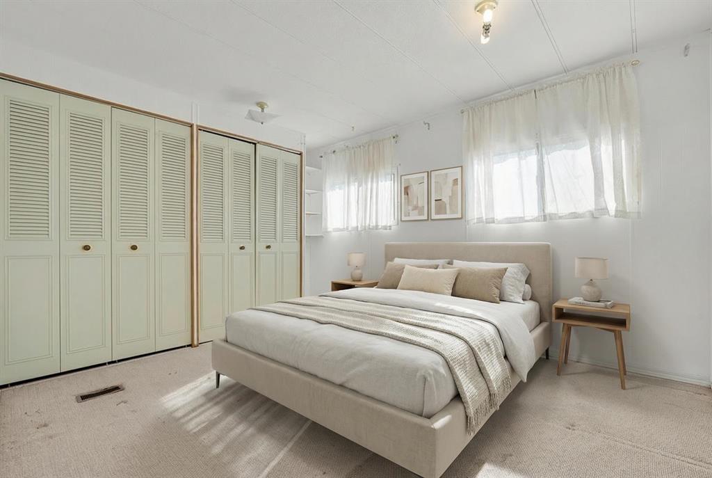 Great value in Watergrove, the premiere 45+ mobile home park in Calgary, boasting a fabulous clubhouse, outdoor pool, sauna, recreation room/party room, billiard room, and enough activities to keep you busy every single day! This 2 bedroom (could be converted to 3), 1 bath home has been lovingly cared for and it shows. The kitchen has wood cabinets, pantry, fridge and stove, and a good size dining area. The large living room easily accommodates a variety of furniture options, with a large front window and 2 additional side windows to bring in the natural light. This floorplan offers a separate laundry room (room for an extra fridge or freezer) large primary bedroom, a second large bedroom which can be converted to two rooms, providing lots of options for a spare room, flex room, etc. The full bath has a Safe Step walk-in tub (with a shower head). There is an on-demand hot water system, the furnace has been recently serviced, an updated Eaton electrical panel cover, and in 2023 the roof was serviced with a roll-on shingle sheathing application. This home has a very functional layout and includes an addition suitable for a bedroom, flex room or utility room. A large covered porch is perfect for your morning coffee, and the large carport protects your vehicles from the elements. Located in a cul-de-sac location, close to the greenspace, and in an amenity filled community – this home is just waiting for its new owner. Nearby Crowfoot Centre provides every amenity you can imagine. Immediate possession is available. Lot fee of $905 includes water/sewer, garbage pickup and recycling. Lease and pet approval is required.