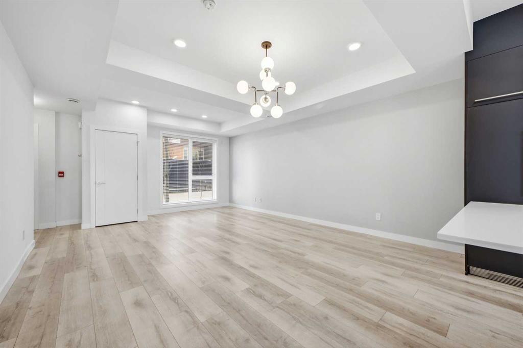 Located in the heart of the vibrant University District, this beautifully appointed 3 storey, 3 bedroom townhome was a former show suite and offers modern design, energy efficient features, and exceptional walkability. The main level showcases 9’ ceilings, engineered wide plank hardwood floors, and contemporary energy saving lighting that enhances the open living and dining areas. The well equipped kitchen is finished with polished quartz countertops, an island with eating bar, sleek contemporary cabinetry, full height backsplash, and a high end designer panel ready appliance package. Convenient laundry facilities and a 2 piece powder room complete the main level. The second level hosts three bright bedrooms and a stylish 4 piece bath. The primary bedroom features generous closet space and a private 4 piece ensuite with dual sinks and an oversized shower. Both bathrooms are finished with high gloss ceramic tile, quartz countertops, and WaterSense certified fixtures for added efficiency. The basement level features a spacious flex area – perfect for a family room or home office setup. A standout feature is the expansive rooftop patio, offering a private outdoor retreat ideal for relaxing or entertaining. Additional highlights include integrated in suite technology with smart wiring, USB smart plugs, TV/phone connections in principal areas, built in smoke detectors, an in suite sprinkler system, in-suite storage and two titled, secured, heated underground parking stalls. Residents enjoy all the amenities that make University District so desirable—vibrant retail districts, beautifully designed parks and open spaces, and extensive biking and walking paths. The University of Calgary, Foothills Hospital, Alberta Children’s Hospital, and Market Mall are all just moments away, creating an unbeatable blend of convenience and lifestyle.