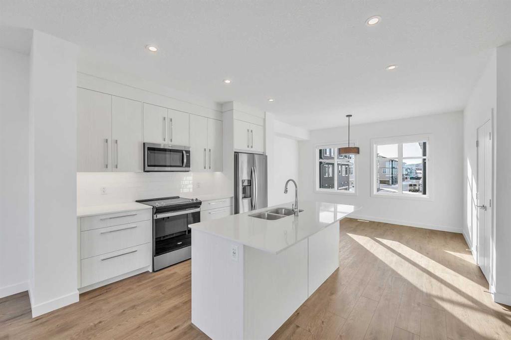 Modern 4-Bedroom Townhome in Belmont – Stylish & Functional Living, Welcome to this beautifully designed ALMOST BRAND NEW 4-bedroom townhouse in the vibrant community of Belmont, SW Calgary—one of the area's most sought-after neighborhoods. Thoughtfully crafted for modern living, this home blends style, comfort, and functionality, making it an excellent choice for families, professionals, and investors alike. Prime Location & Convenience: Nestled in a peaceful yet well-connected community Easy access to major roadways and transit options Thoughtfully Designed Layout: Ground Floor: A versatile bedroom/home office/guest suite to fit your lifestyle needs Attached Double Garage: Secure parking & extra storage for year-round convenience Second Floor: A bright and open living space with large windows bringing in natural light Stylish Kitchen: Full-height cabinetry, quartz countertops, stainless steel appliances & a spacious pantry Top Floor: • Primary Suite with a walk-in closet & private 4-piece ensuite • Two Additional Bedrooms & a full bathroom for family or guests • Convenient Upstairs Laundry Room for effortless living With high-end finishes, durable vinyl plank flooring, and a smartly designed layout, this townhome is the perfect blend of elegance and practicality. Don’t miss this opportunity to own a stunning home in a rapidly growing community! **Virtual photos shows for presentation purposes only**