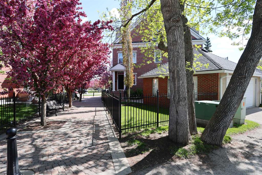 Not-to-miss rare opportunity here in the exclusive estate community of Garrison Woods, in this lovingly maintained brick brownstone across from Garrison Square Park. As one of the largest townhomes in the community and prime for redevelopment to make it your very own, this incredible end unit enjoys 4 bedrooms and 2 full baths, maple kitchen with concrete floors, detached 2 car garage and an amazing 300+sq ft balcony with panoramic views of the surrounding neighbourhood. You will simply love the design of this beautifully decorated home, which features an elegant formal living room with views of the park and a brick fireplace complemented by built-in bookcases, all of which leads into the open concept kitchen and dining room with concrete floors, huge walk-in pantry and maple cabinets. The appliances include a Bosch dishwasher and Maytag gas stove. There's also a great-sized bedroom on the main floor with 2 closets and its own separate access into a full bath. With expansive vaulted ceilings and dormer windows, the top floor hosts the owners' retreat with a big walk-thru closet and soaker tub ensuite with double vanities and separate shower. There are 2 additional bedrooms on this level…1 which would also make a super home office, nursery or exercise room. A laundry room with sink, built-in cabinets and Whirlpool Duet steam washer and dryer complete this level. With its prime location on one of the most desirable streets in Garrison Woods, you'll love being within walking distance to the trendy Marda Loop retail district with its popular restaurants and boutiques, services & shops. And with its quick and easy access to Crowchild Trail and 14th Street, your new home is only minutes to everything this coveted inner city neighbourhood has to offer...major retail centers, highly-rated schools, Mount Royal University, transit, parks, golf course and downtown.