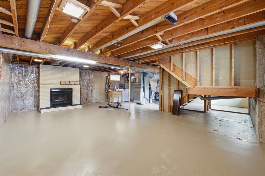 The lower level remains unspoiled and ready for your creative vision. Whether you imagine additional bedrooms, a recreation space, gym, or suite potential (subject to city approval), the possibilities are endless. The inviting wood-burning fireplace creates a cozy focal point that will make this area a future favorite spot for family gatherings.