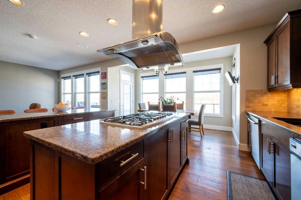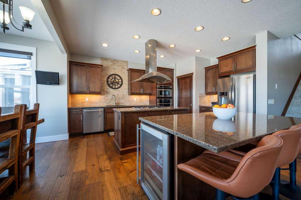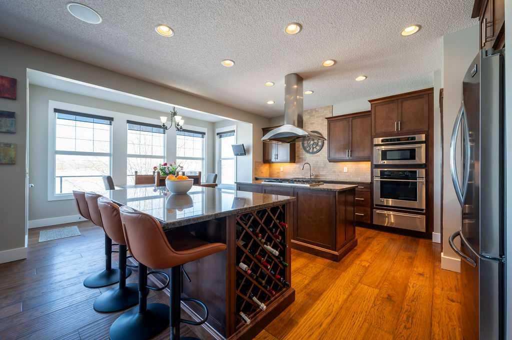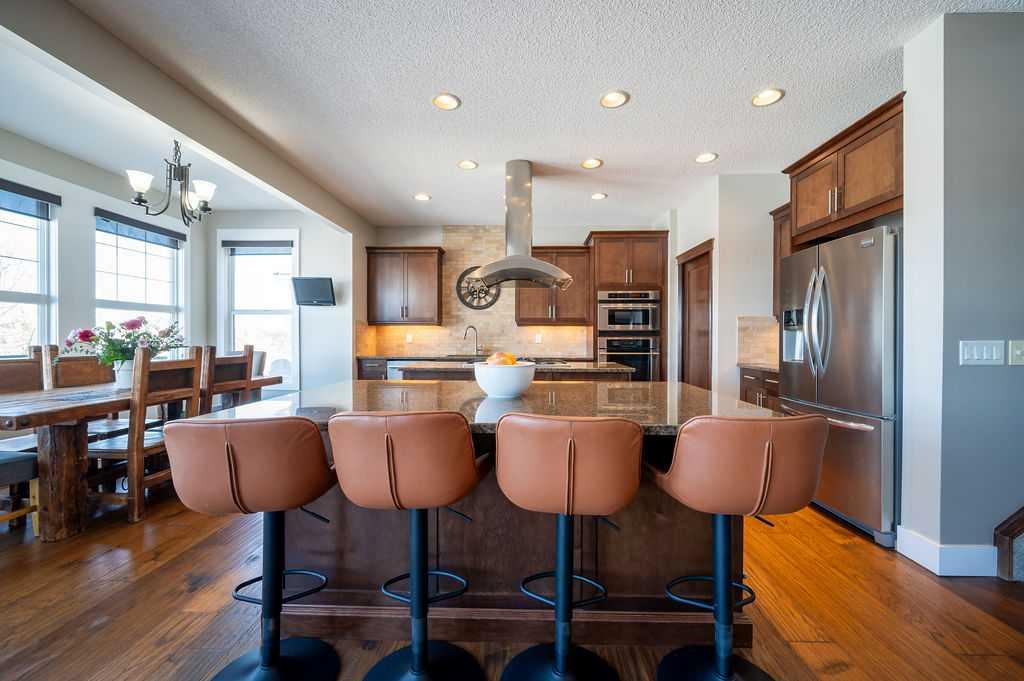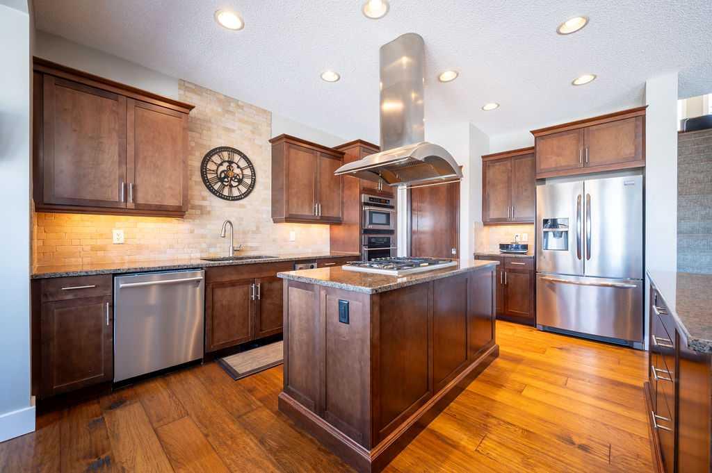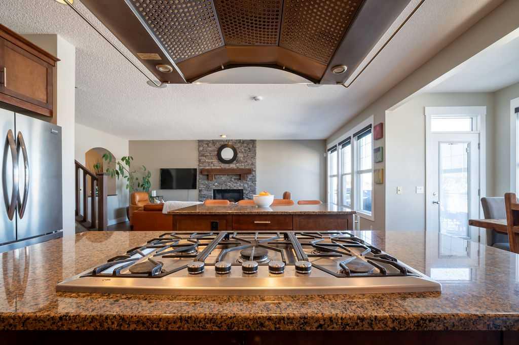 .Welcome to elevated family living in beautiful Chaparral Valley, Enjoy your morning coffee with the morning sunshine and stunning views of Blue Devil Golf Course, Valley and surrounding nature. This 4-bedroom, 3.5-bath home was designed for both luxury and everyday family life. The open-concept main floor features a custom chef’s kitchen with double islands, granite countertops, upgraded stainless steel appliances, and a built-in oven, convection microwave and beverage fridge — perfect for entertaining or busy mornings with the kids. The spacious dining area and cozy family room with fireplace create a warm, inviting atmosphere. Upstairs offers two generous kids’ bedrooms, a large laundry room with cabinetry, and a true primary retreat complete with a flex area, spa-inspired ensuite with soaker tub and steam shower, and a walk-in closet. The fully finished walkout basement adds even more living space with an additional bedroom, bright rec room with fireplace, flex space for a gym, and rough-ins for a future kitchen or bar. Enjoy your oversized deck with breathtaking morning sun, underground sprinklers, and a triple tandem garage with exceptional storage or perfect for developing the next hockey superstar. With recent exterior upgrades (new shingles & front stone work in 2022) and endless updates throughout, this is the perfect place to plant roots and call home.