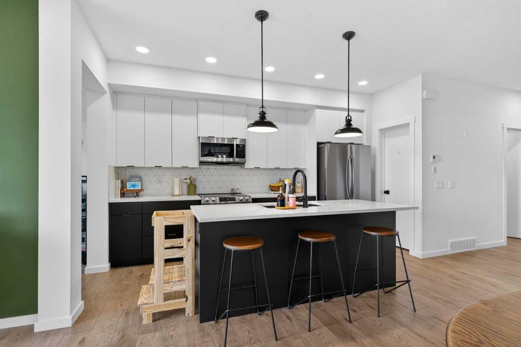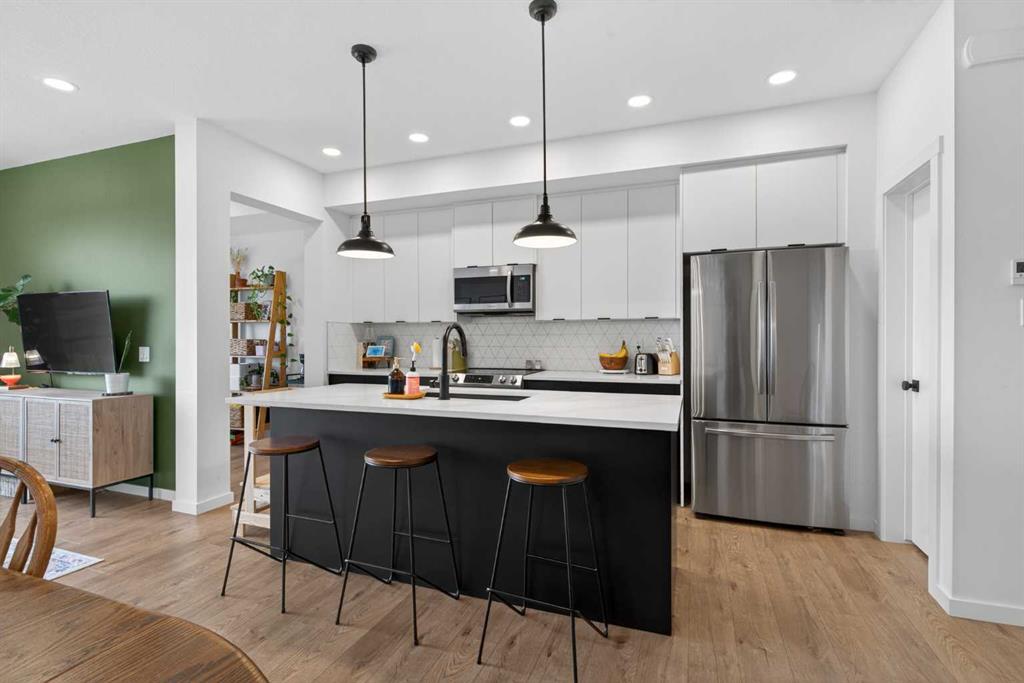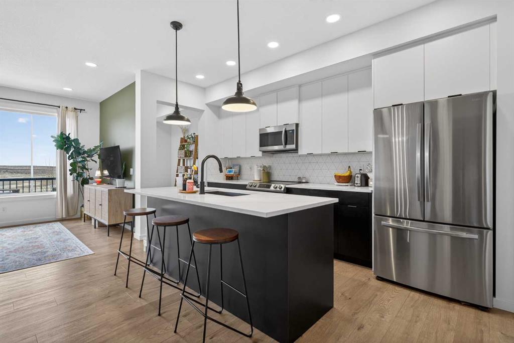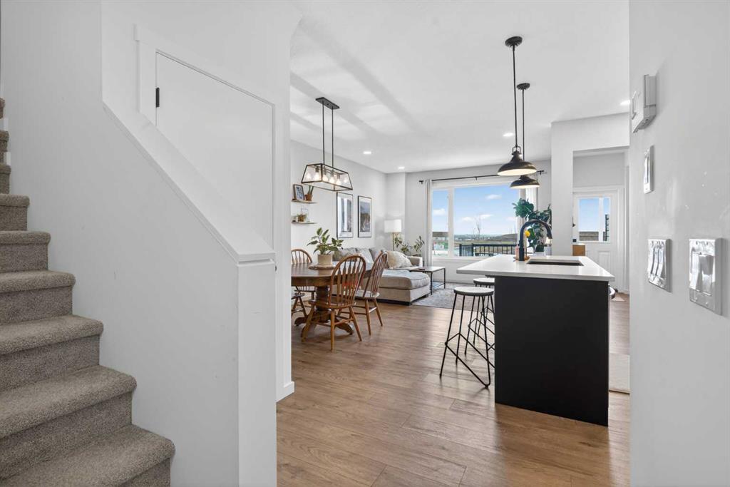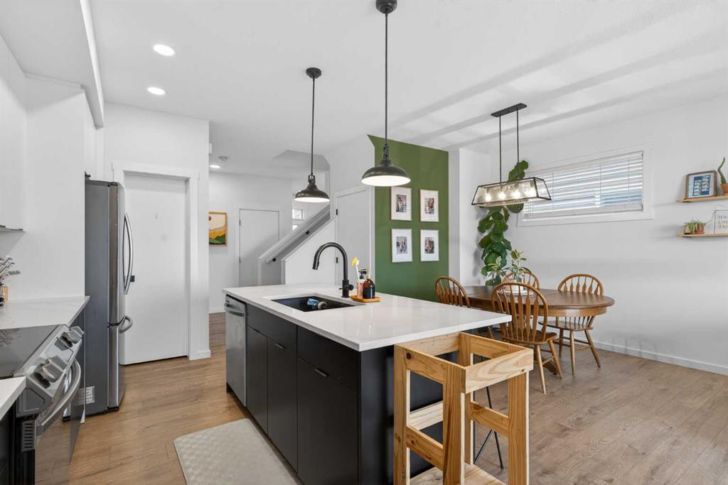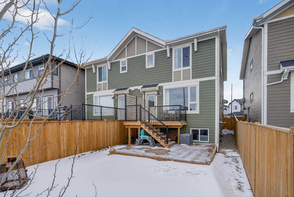Ready & waiting for a new family to make it their own is this fantastic two storey home in the popular Southwest Calgary community of Pine Creek. Built by Stepper for the original owners, this beautifully upgraded semi-detached home enjoys laminate floors & granite countertops, total of 3 bedrooms + loft, oversized 1 car garage & fenced backyard with multi-level deck for your outdoor living. Bathed in natural light & complemented by 9ft ceilings, you’ll just love the expansive main floor with its airy living room with large picture windows, open to the great-sized dining room & sleek kitchen with 2-toned cabinetry & walk-in pantry, loads of cabinet space & Samsung stainless steel appliances. Head on upstairs to the 3 bedrooms & 2 full bathrooms…with a central loft area which would make a terrific space to relax with the kids, as a media room or office. The primary bedroom has a walk-in closet & ensuite with tile floors & separate shower, soaker tub & granite-topped vanity. Completing the 2nd floor is the laundry room with stacking LG washer & dryer. The unspoiled lower level – with an oversized window & roughed-in plumbing, offers tremendous potential for a future 4th bedroom, bathroom & rec room. Additional features include upgraded lighting, main floor mudroom, natural gas line for your BBQ on the upper backyard deck & separate side entrance between the main & basement levels. Prime location with quick easy access to both Stoney & Macleod Trails, just minutes to Spruce Meadows & Shawnessy Towne Centre, Granary Road Park, Fish Creek Park & Sikome Lake, LRT, South Health Campus & downtown.
