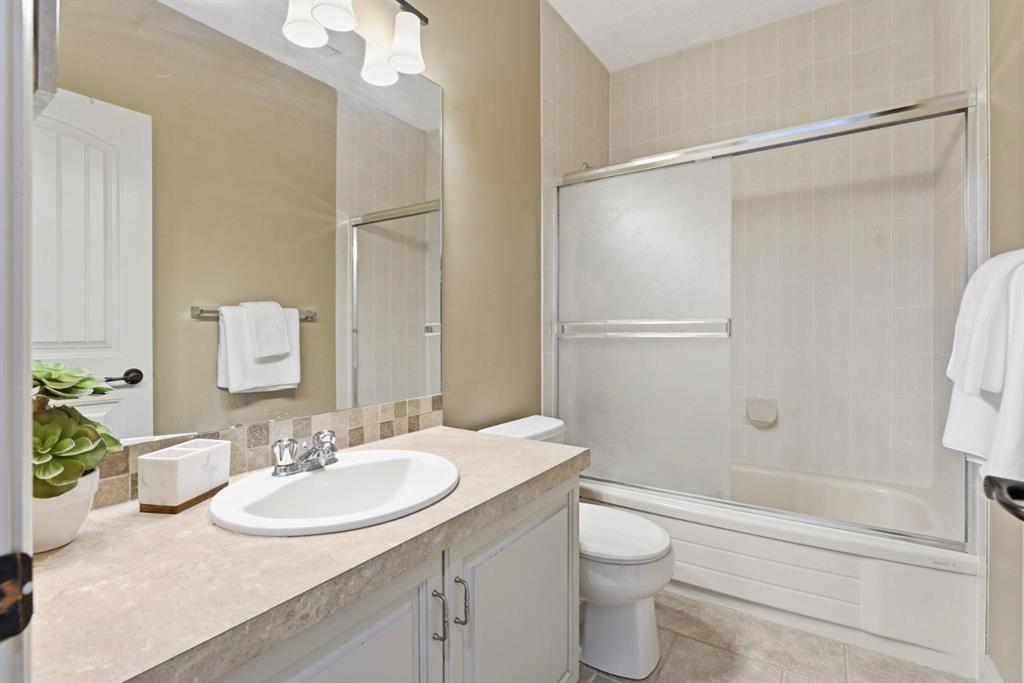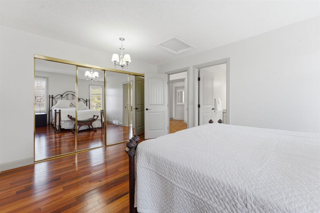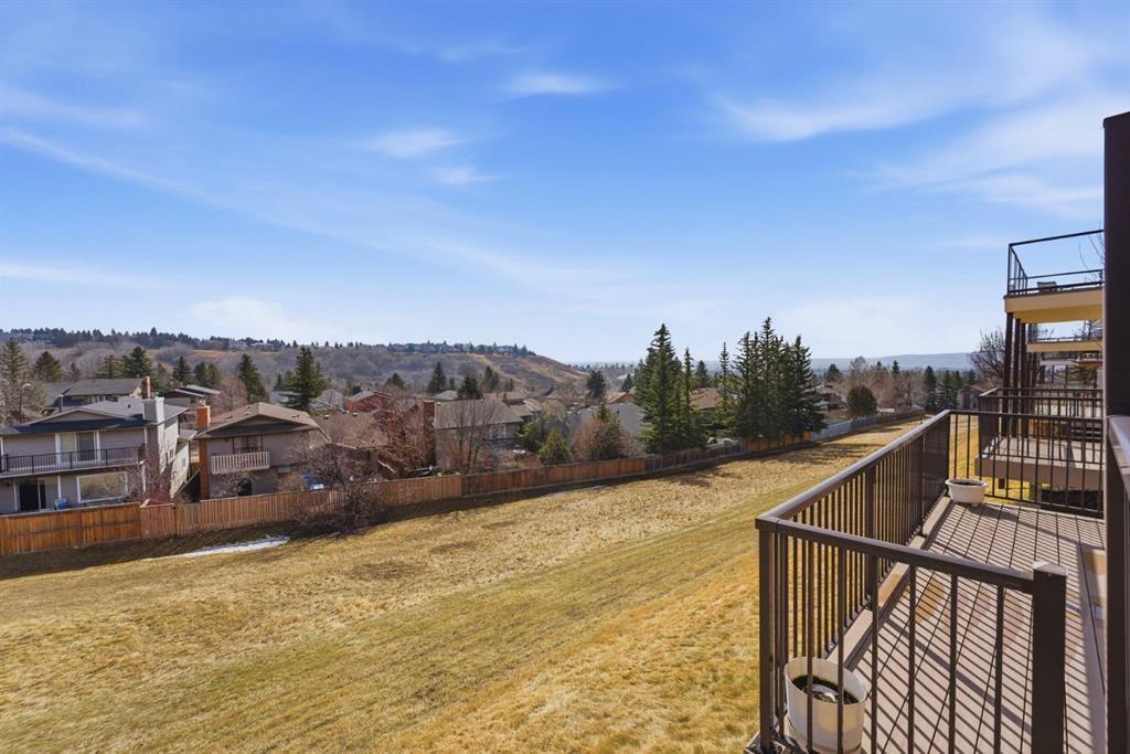 Discover 54 Edgeland Close NW—a beautifully maintained villa-style home in the prestigious Summit Point Estates of Edgemont. Perfectly positioned backing directly onto lush greenspace, this rare property offers breathtaking city and valley views from your private west-facing deck and select main-level windows. Enjoy unparalleled privacy and tranquility surrounded by mature trees, rolling green belts, and natural beauty—all steps from everyday conveniences. Completely updated throughout with fresh neutral décor, high-end plantation shutters on every window, and exquisite Brazilian Tigerwood hardwood flooring flowing seamlessly through most of the main floor. The home features a brand new high-efficiency furnace, central air conditioning, newer shingles and fresh exterior paint for lasting curb appeal and worry-free ownership. The sun-filled main level welcomes you through a large front entrance with vaulted ceilings and generous windows framing beautiful views. Open-concept living and dining area flows to a living room anchored by a gas fireplace featuring elegant oak mantle and stone facing, complemented by oak built-in bookshelves adding character and function. The chef's kitchen offers abundant oak cabinetry, granite countertops, stainless steel appliances, large pantry, in-floor heating for comfort, and garden door to west-facing balcony with gas BBQ hookup—ideal for outdoor dining. Both balcony and lower deck feature new Duradek surfaces for fresh, durable, low-maintenance enjoyment. The oversized primary bedroom easily accommodates king-sized bed with 4-piece ensuite featuring in-floor heating. A main-floor office/den with custom oak built-ins provides versatile quiet workspace, while convenient 2-piece bath combined with laundry completes this well-designed level. The fully developed walk-out lower level offers 9-foot ceilings, full in-floor heating, sliding door to lower deck, and bright open layout perfect for relaxing or entertaining. The family room showcases gas fireplace with oak mantle and brick facing plus oak built-ins for warmth and charm. Two generous bedrooms and 4-piece bathroom provide comfortable guest or family accommodation, while massive storage areas with extensive shelving and cabinetry ensure effortless organization. Step out to private west-facing decks—ideal outdoor retreats for relaxing, entertaining, or soaking in spectacular city and valley vistas. Summit Point Estates delivers vibrant yet peaceful condo living with meticulously maintained common areas and easy access to Edgemont's shops, restaurants, transit, schools, and extensive pathway network. This turnkey villa combines exceptional updates, premium oak finishes, vaulted ceilings, large front entrance, comprehensive in-floor heating, central air conditioning, unbeatable greenspace position, and postcard-worthy views representing one of the finest offerings in Calgary's most coveted northwest enclaves.
