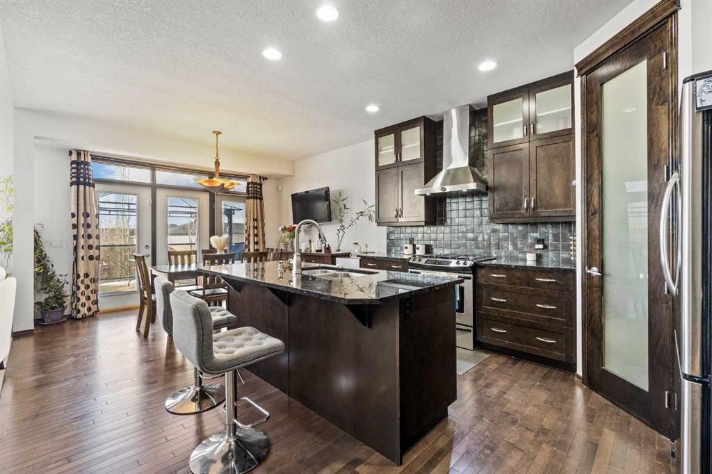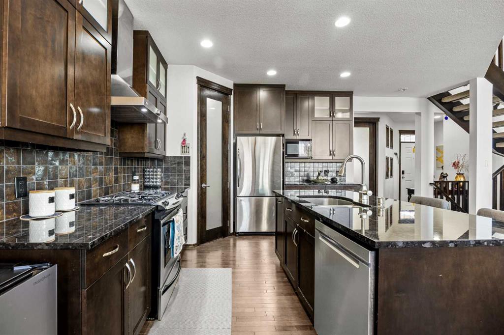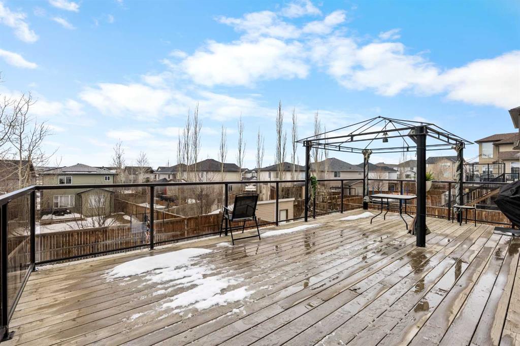 Welcome to this impressive 3-bedroom, 2.5-bath family home in the sought-after community of Panorama Hills, offering 2,225 sqft of above-grade living space plus a 2-bedroom illegal basement suite in Walkout level for excellent rental income potential (3,137 sqft total). Step inside to 9-foot ceilings throughout the main level with gleaming hardwood flooring. Continue to the heart of the home with an open floorplan, where you'll be amazed by the soaring 2-storey Living room with large windows and anchored by a grand oversized gas fireplace. On the other side, the gourmet Kitchen features ceiling-height maple cabinetry, centre island, granite countertops, stainless steel appliances including gas stove, and walk-through pantry. Adjacent is the Dining room leading out to a full-width deck with glass panel railing and gazebo—a perfect place for hosting parties, summer barbecues, or relaxation. A Main floor Den with French doors is perfect to be your home office.