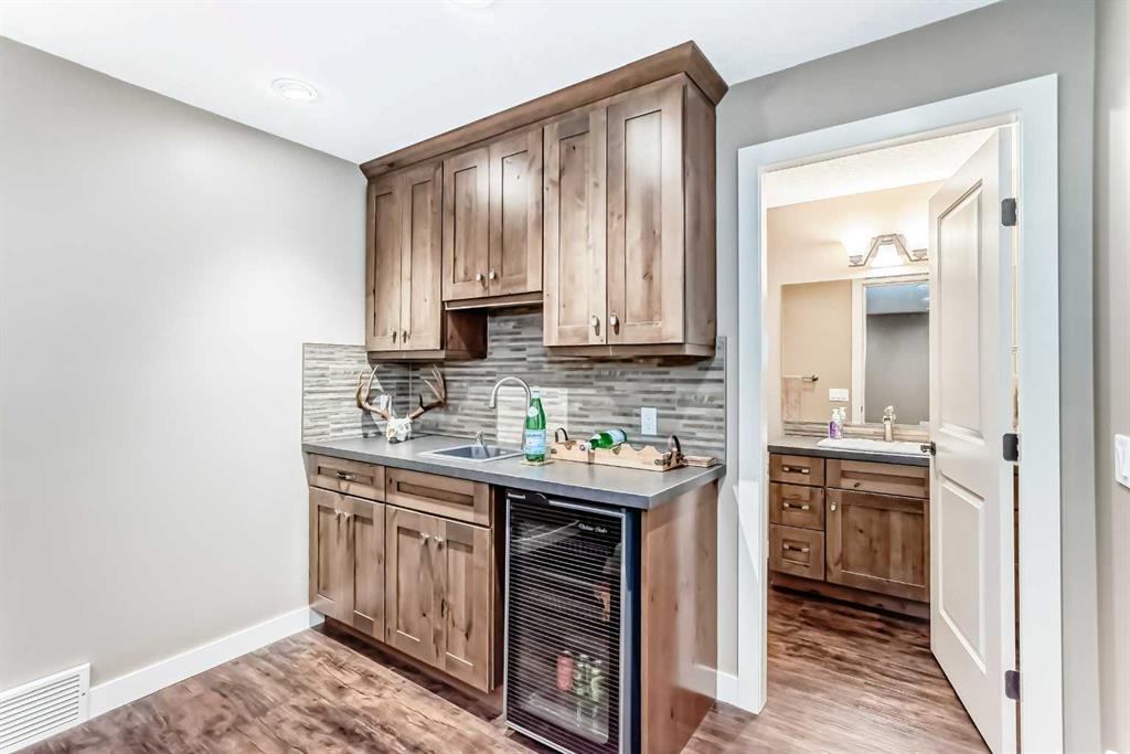 Welcome to this warm, beautiful, and meticulously maintained 2,167 sq ft home in the highly desirable community of Aspen Woods, ideally located close to excellent schools, parks, and everyday amenities. Proudly offered by the original owners, this 4 bedroom, 3.5 bathroom residence reflects years of thoughtful care, quality upgrades, and a layout that truly supports family living. The open-concept main floor is filled with natural light from the sunny south exposure and features Brazilian walnut hardwood, plus a kitchen with granite countertops and upgraded appliances, perfect for daily living and entertaining. Upstairs offers three bedrooms, including a generously sized primary suite featuring two walk-in closets and a 5-piece ensuite with a jetted tub. Two additional bedrooms are served by a 4-piece main bathroom, and the convenient upper-floor laundry includes a newer washer (2025). A spacious bonus room completes the upper level and is ideal for movie nights, a kids’ hangout, or simply unwinding after a busy day. The fully developed basement (2016) adds outstanding flexibility with a fourth bedroom, a 4-piece bathroom, spray foam insulation, insulated subfloor, a wet bar, and excellent storage for hobbies, tools, and gear. Mechanical updates include an upgraded furnace, a commercial-grade water softener (2016), and a radon mitigation system (2023). The backyard is a true highlight with mature fruit trees, garden plots, an exposed aggregate concrete patio, and a custom shed. A heated, double attached garage completes this exceptional home. A true Aspen Woods gem, beautifully cared for and ready for its next chapter.