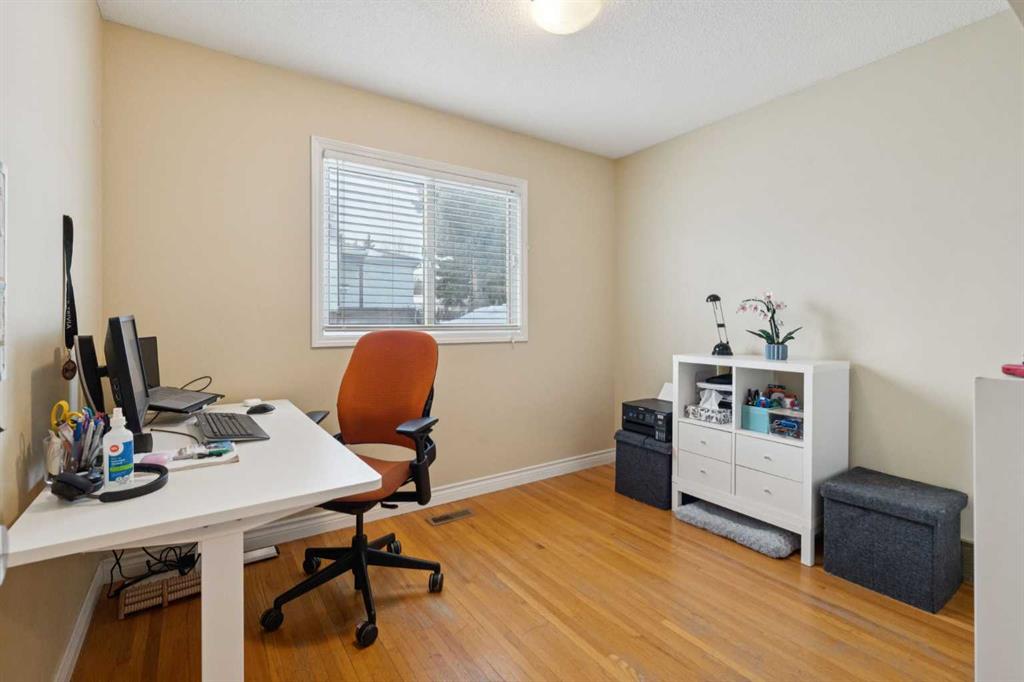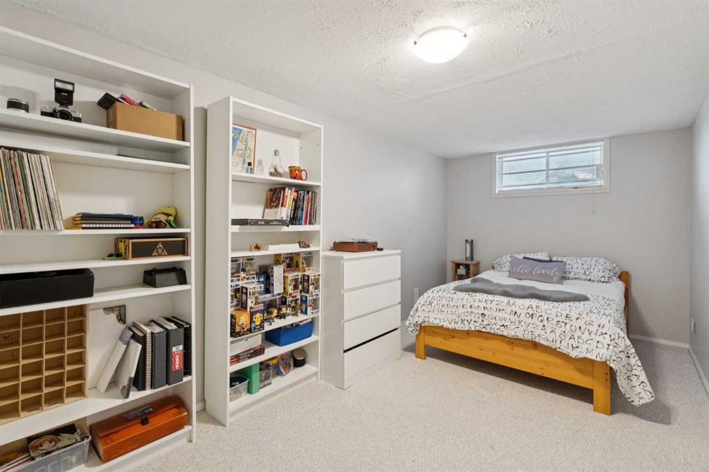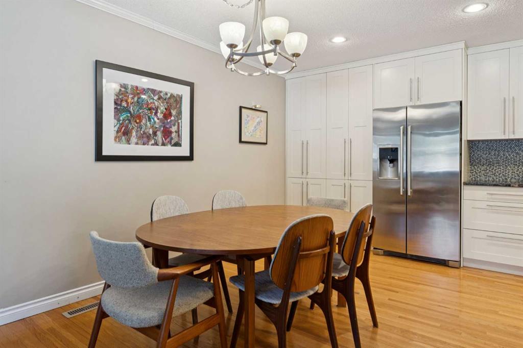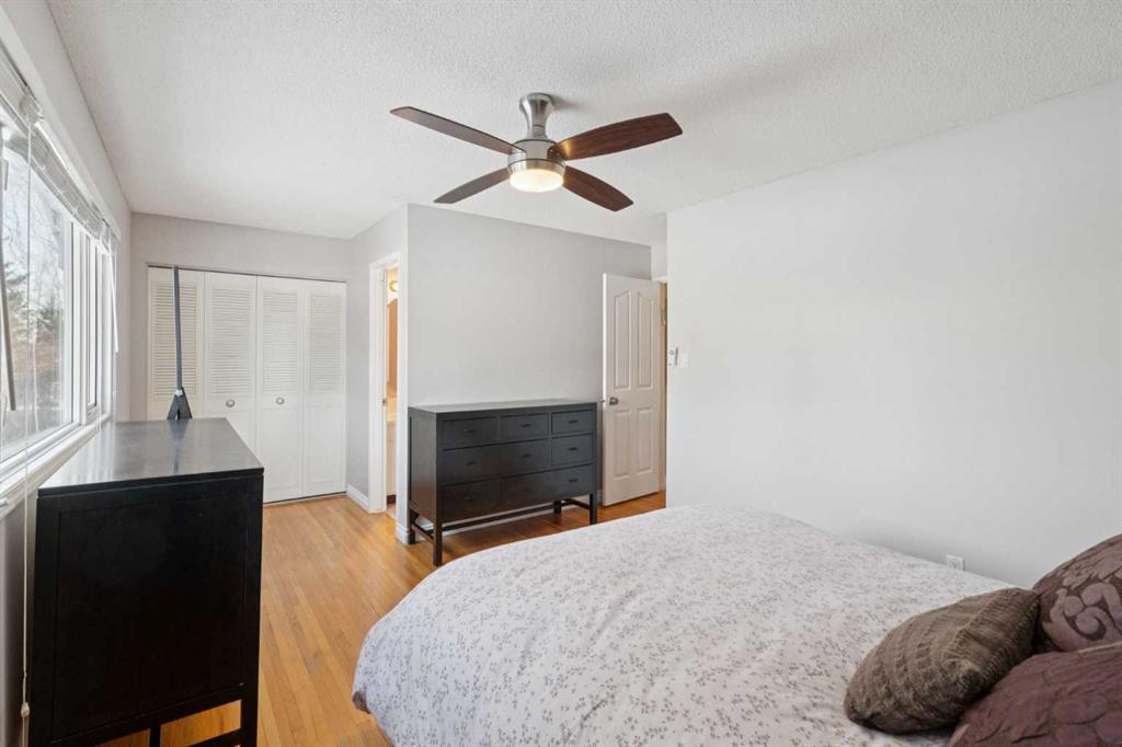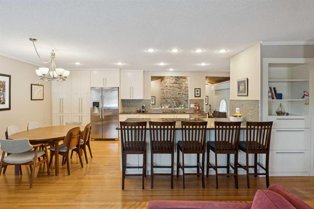 RARE FIND! Beautifully maintained and upgraded, this 3+2 bedroom bungalow offers 2,919 SF of developed living space featuring a 315 SF vaulted family room addition with open-beam ceiling and a striking floor-to-ceiling stone fireplace. A tremendous benefit to this reno was the ability to expand in to a custom kitchen (2010) that is absolutely stunning, showcasing an abundance of custom cabinetry, stone counters, breakfast bar and stainless steel appliances including double ovens making this kitchen a Chef’s dream. Additional highlights include hardwood floors which run through the main living areas and bedrooms, updated main bathroom (2017), modern interior finishing and large upgraded windows. The basement is finished with two additional bedrooms, a newer 4 piece bathroom, hobby/rec space, storage and laundry. Major exterior and mechanical updates include Hardie board siding (2019), new roof on both the house and garage (2019), central A/C (2018), hot water tank (2016), R40 insulation, and 90% window replacement. Situated on a large pie-shaped lot with a detached, oversized double garage (23'x21') and walking distance to Louis Riel School, community center, parks, and pathways—this is an exceptional opportunity to own a turnkey home in one of Calgary’s most established, family-friendly neighborhoods.