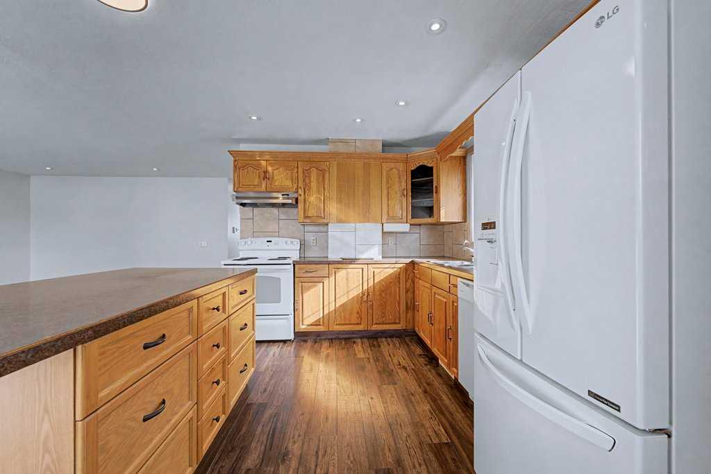 This stylish home will a total of 4 bedrooms and 2 bathrooms is sure to thrill the most discerning buyer! The open-plan concept boasts newer laminate flooring throughout main level and brand new carpet in the lower level. Newly painted throughout, so this home sparkles! The gourmet kitchen features raised panel oak cabinetry, with a central island - perfect for entertaining. Double master bedrooms adjacent to the newer 4 piece bathroom with granite counter. The front "west-facing" deck off the main living area is perfect for relaxing on warm evenings. The lower level features a wood burning fireplace, plus 2 bedrooms and a 3 piece bathroom. There is a separate laundry / kitchen area with large windows, plus a stand-up freezer and full (2nd) fridge included. **Newer windows throughout home, plus a newer roof! New furnace 10 years ago and newer hot water tank. A single oversized garage completes this wonderful property. Quiet cul-de-sac location with excellent neighbours.