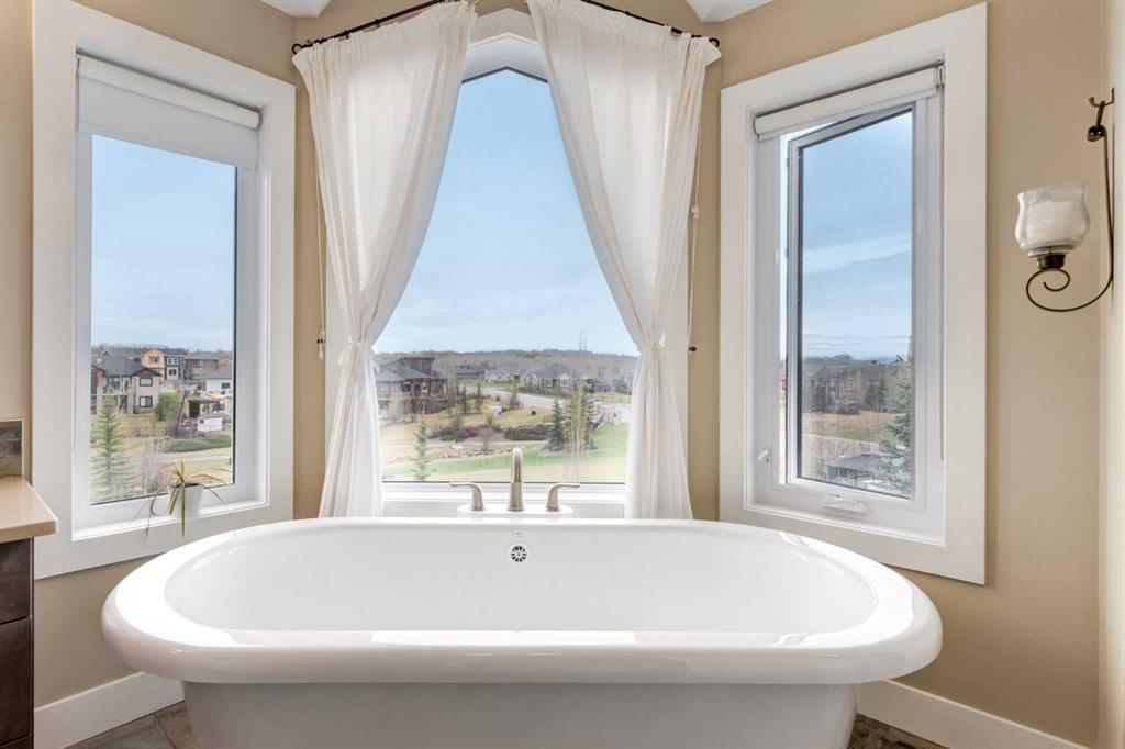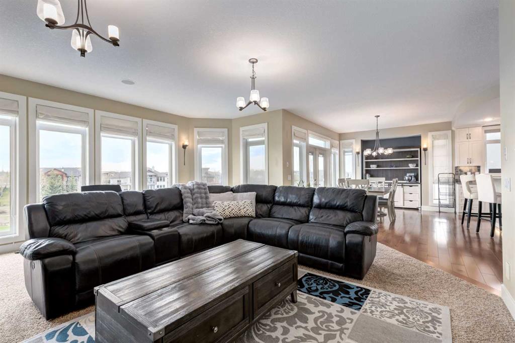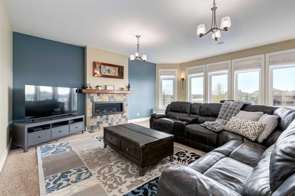 Welcome to lakeside luxury in Monterra, where mountain views, peaceful green space, and modern design come together on a stunning 1/3 acre south-facing lot. This estate home offers over 4,100 sq. ft. of thoughtfully designed living space that captures breathtaking views from nearly every room. From the moment you walk in, you’ll notice how light and scenery flood the open-concept main floor. The heart of the home is the chef’s kitchen—complete with a striking curved quartz island, Bosch and Jennair appliances, and endless white cabinetry (with a built-in toe-kick vacuum for easy cleanup). The walk-through pantry connects seamlessly to a family-sized mudroom with custom lockers, making everyday living effortlessly organized. Just off the kitchen, the great room showcases panoramic lake and mountain views with a cozy fireplace for those crisp Alberta evenings. Need to work from home? A private main floor office offers quiet focus away from the buzz of daily life. Upstairs, the showstopper is the vaulted primary retreat—complete with heated floors in the spa-like ensuite and tinted windows for both comfort and privacy. Step out onto your private balcony, coffee in hand, to soak up unobstructed mountain and lake views before the rest of the house wakes. Two additional upper bedrooms and a well-placed full bathroom sit just down the hall, along with a spacious laundry room for added convenience. Downstairs, the fully finished walkout basement provides ultimate flexibility. Whether it’s multigenerational living, if you want to add a separate private living quarters, room for guests, or another family hangout spot—the layout is ready, featuring two more bedrooms, a wet bar/kitchenette, second laundry, and a separate entry. The home runs efficiently with in-floor heating, two furnaces, water softener, and solar-ready wiring. The triple garage- It’s finished with epoxy flake floors, baseboard heat, and room for all your gear. Step outside to your beautifully landscaped yard with irrigation, a custom stone and wrought iron fireplace/Pizza Oven, roman paved patio, and wiring for a hot tub—your outdoor entertaining dreams await. Monterra at Cochrane Lakes is where luxury meets nature—a semi-rural setting just minutes from the city and the mountains. Book your showing today and discover why this is more than a home… it’s a lifestyle.