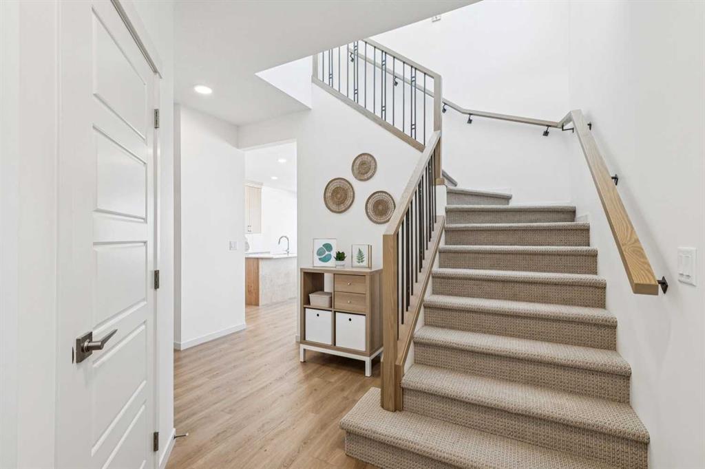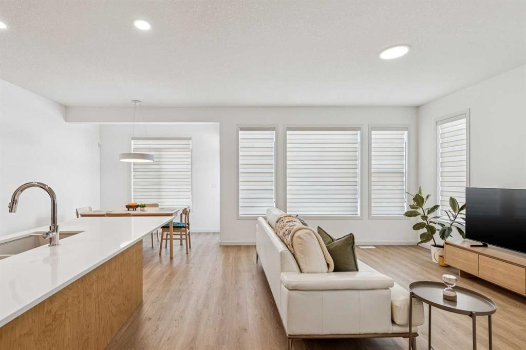 Rare opportunity to own a like-new walkout home on a massive west-facing pie lot backing onto green space, with mountain views on clear days! Built just over 2 years ago and located on one of Livingston’s few quiet closed streets with no through traffic, this property offers privacy, views, and a lot size that is nearly impossible to replicate in newer developments. Welcome to 150 Lucas Close NW, offering nearly 1,800 sq ft above grade, a double attached garage, and a thoughtfully designed layout built for modern living. The bright main floor features an open concept design with a stylish kitchen complete with quartz countertops, soft-close maple cabinetry, Whirlpool appliances, and gas range rough-in, flowing into the dining area and living room with large windows and access to the rear deck overlooking the expansive backyard. Upstairs you’ll find 3 bedrooms, a spacious primary suite with a large walk-in closet and ensuite, upper floor laundry, another full bathroom, and a large bonus/family room—perfect for families or additional living space. The layout was carefully designed with no bedrooms above the garage and sound-dampening insulation between key rooms for added comfort. The walkout basement with 9’ ceilings is already roughed in for a future suite (with City approval), with drain rough-ins for kitchen, bathroom and laundry, a 200-amp electrical panel, gas connection, and separate door locks already installed—offering excellent potential for future development. Additional features include Class 4 impact resistant shingles, central air conditioning, smart home upgrades, hardwired security cameras, EV charging conduit rough-in, widened double attached garage, expanded driveway parking, and an oversized backyard. And all this before even mentioning the incredible amenities that make Livingston one of Calgary’s most exciting communities. Residents enjoy access to the impressive Livingston Hub, a 35,000 sq ft residents’ association facility featuring skating rinks, tennis courts, playgrounds, splash park, indoor gathering spaces and year-round community programming. The neighbourhood is designed around outdoor living with extensive pathways, parks, and green spaces, while still offering convenient access to Stoney Trail, Deerfoot Trail, nearby shopping, schools, and the Calgary International Airport. A move-in ready home on one of the best lots in Livingston, combining location, privacy, and future potential.