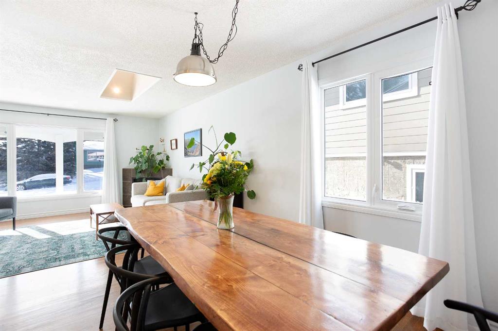 Inside, the bright entrance opens to a spacious living and dining area, ideal for both everyday living or hosting friends and family. Beautiful hardwood floors and a gas fireplace welcome you as you enter the main living area. The naturally bright living room, with both large windows and dual skylights, keeps the space bright throughout the day.