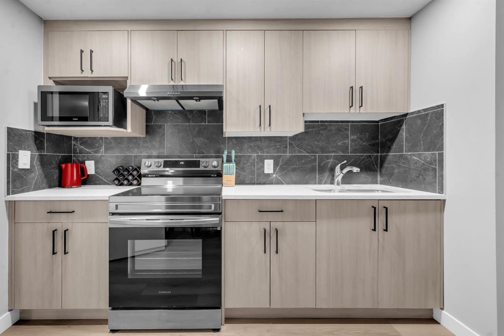 The basement continues to impress with high ceilings, a separate side entrance, a full second kitchen with stainless-steel appliances and granite counters, a large living area, and two bedrooms.