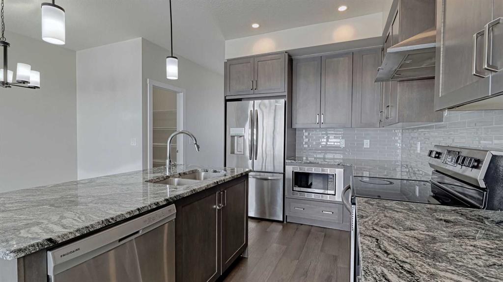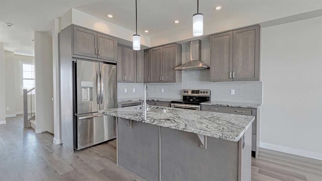 Welcome to this New and young community of Alpine park. No Condo fees!!!!. Spacious 3 Level home plus a lower level. 3 bedrooms + large main floor Den/Office, 2 and 1/2 bathrooms, Double attached garage. This home offers lots of living space, beautiful open concept with 9 ft Ceilings, lots of large windows and natural light coming in. The second level is very welcoming with large Living room, Dining room, and a Stylish kitchen. Upgraded Stainless steel appliances, Quartz counter, large island, lots of upgraded cabinets, Luxury vinyl laminate flooring and more. Enjoy large family or intimate dinners in the ideal Dining room. Primary Suite has a 4 piece En-suite and very large walk-in closet. Two more very good size bedrooms on this level and a 4 piece main bathroom, and laundry. Double attached garage is a bonus. Close to many amenities, shopping, and major routes . Transit bus stop is 1 minute away. Property to be painted and professionally cleaned. A perfect home for you to enjoy.