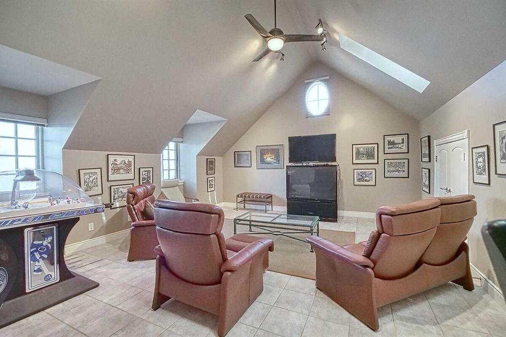 Custom walkout bungalow, backing onto Fish Creek Park with stunning West Bow River, Valley and Mountain Views. Offering over 4,500 sqft of living space, this impressive home features a grand foyer with open staircase, a great room with 20’ ceilings, two-sided fireplace, surround sound and wall-to-wall windows. Gourmet kitchen with stainless steel appliances, three sinks, large island, eating nook and granite throughout. Spacious 600 sqft vaulted loft adds flexible living space. The primary suite includes a 5-pc ensuite, walk-in closet with washer/dryer hookups, and patio access. Fully finished walkout level with cork flooring, media room, billiards area with bar and Sub-Zero package, three bedrooms (one with 4-pc ensuite). Professionally landscaped yard. Built with foam block concrete construction (1-ft walls) and in-floor hot water heat, HRV, boiler, ventilation system, triple car garage and ample storage. Please see full Virtual Tour.