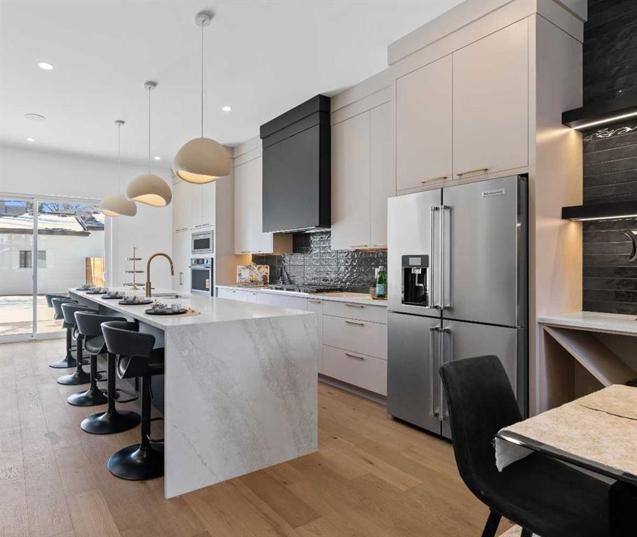 *SHOWSTOPPER ~ WITH A UNIQUE LAYOUT* Welcome to this brand-new, exquisitely designed luxury home located in the highly sought after Killarney inner city area, an exceptional neighbourhood just minutes from downtown Calgary. This stunning residence offers superior finishes and thoughtful features that truly set it apart from the competition. Step into the unique main floor layout and be greeted by an inviting living room to your left, complete with a cozy fireplace and a discreet half bath. The centrally located dining area flows seamlessly into a spacious kitchen at the back, which overlooks a west facing backyard with a raised deck ~ perfect for entertaining or relaxing outdoors. A practical mudroom with a walk~in closet completes the main level, providing ample storage and convenience. Upstairs, the large primary bedroom boasts a vaulted ceiling, private balcony, luxurious ensuite, and generous walk-in closet ~ a true retreat. Two additional secondary bedrooms feature elegant tray ceilings and walk~in closets, complemented by a well~placed upper laundry room for added ease. The fully finished basement offers a legal suite with a central kitchen, two bedrooms positioned on opposite ends for privacy, and a shared living room area. The front bedroom includes a walk~in closet, sharing a modern four ~ piece bathroom. For ultimate comfort, the home is pre~wired with a rough~in for air conditioning and equipped with speakers. This home’s value lies in its exceptional style; stunning curb appeal, high~end finishes, and thoughtfully designed living spaces that elevate everyday living. Don’t miss your chance to own this remarkable and stylish new construction home in the beloved Killarney community.