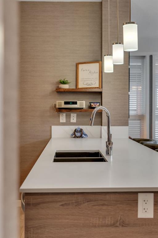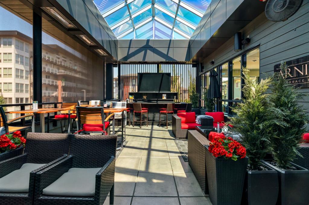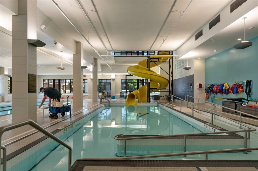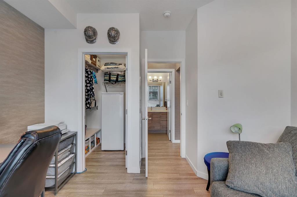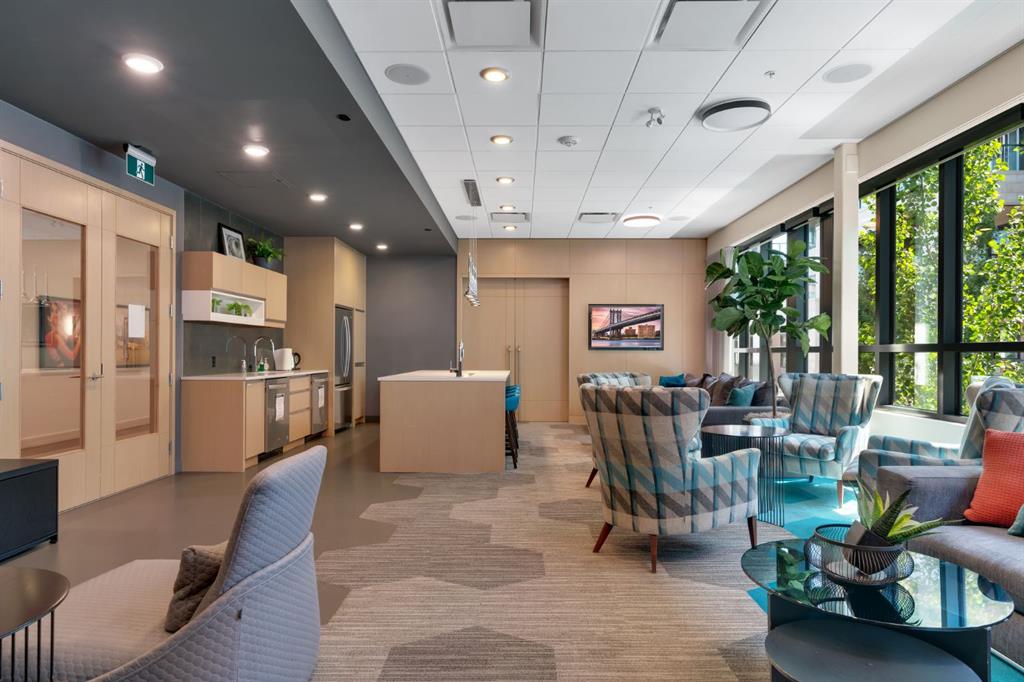 Welcome to Calligraphy with resort style living at Westman Village on Mahogany Lake. This fabulous corner unit has two bedrooms, 2 full bathrooms and two parking stalls, one with private storage. The former show suite updates add character in this well-appointed unit. The living/dining room combination has west facing windows to allow the sun to shine in. The kitchen features sliding drawers and a breakfast bar with built-in storage. The primary bedroom accommodates a king-sized bed with room for a dresser, and it has two closets and a 3-piece ensuite with a walk-in shower. The second bedroom is located at the other end of the unit and is great space for an additional sleeping, office, den or craft room and has a walk-in closet for additional storage. There is a 4-piece main bathroom adjacent to the second bedroom. Sliding doors off the dining room lead to a wrap-around, west-facing balcony overlooking the courtyard with a water feature. The unit has additional storage with a pantry and a laundry area. This unit also has two underground titled parking stalls; one has a private storage room. Now let’s talk about the 40,000SF Village Centre and its many amenities, it is a must see, ask the concierge for your tour. In the amenity center, you will be able to enjoy the lane pool, activity pool, hot tub, steam room, exercise room, full gymnasium, theatre, industrial kitchen, virtual golf, party room, billiards and darts, craft room, woodworking shop, library, green thumb room, walking track, wine room, fire pit, playground, car wash, dog wash and there are electric vehicle charging stations. Also located in the complex are your favourite retailers, award winning Chairman’s Steakhouse and Alvin’s Jazz Club, more restaurants, amenities. A 5-minute walk to Sobeys and more shops. The complex is located on Mahogany Lake with its unique pathways. You will be able to enjoy the Mahogany Beach Club and all it has to offer. Call today and come view this fabulous unit…. don’t just move to a condo, move to a lifestyle! Welcome Home!