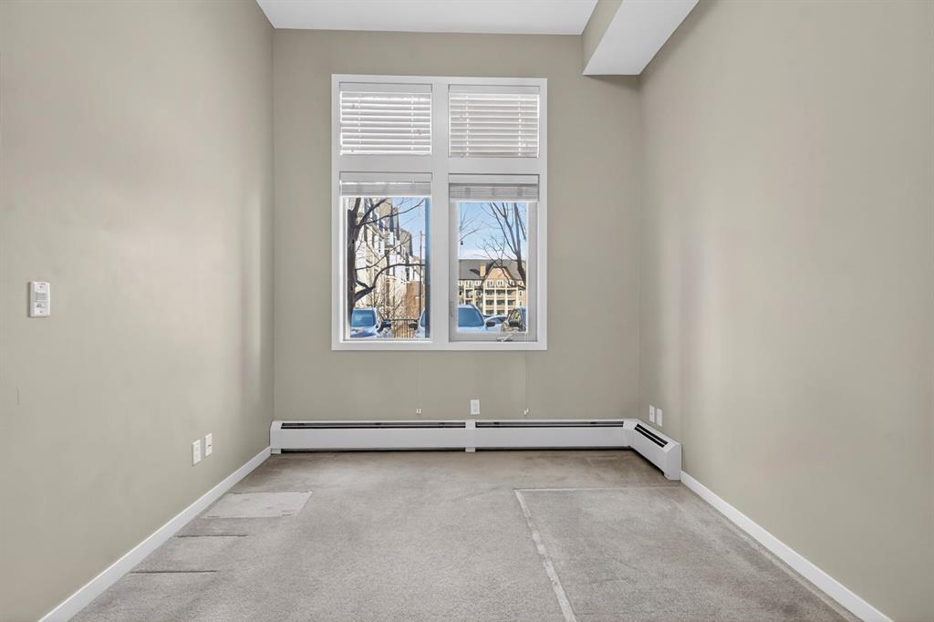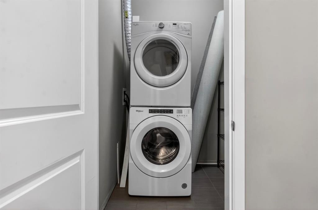 Inside, you’ll find laminate flooring, soaring 10-foot ceilings, quartz countertops, stainless steel appliances, and convenient in-suite laundry. The thoughtfully designed layout also includes a gas line on the private patio for your BBQ, rough-in for air conditioning, a parking stall, and a separate storage locker.